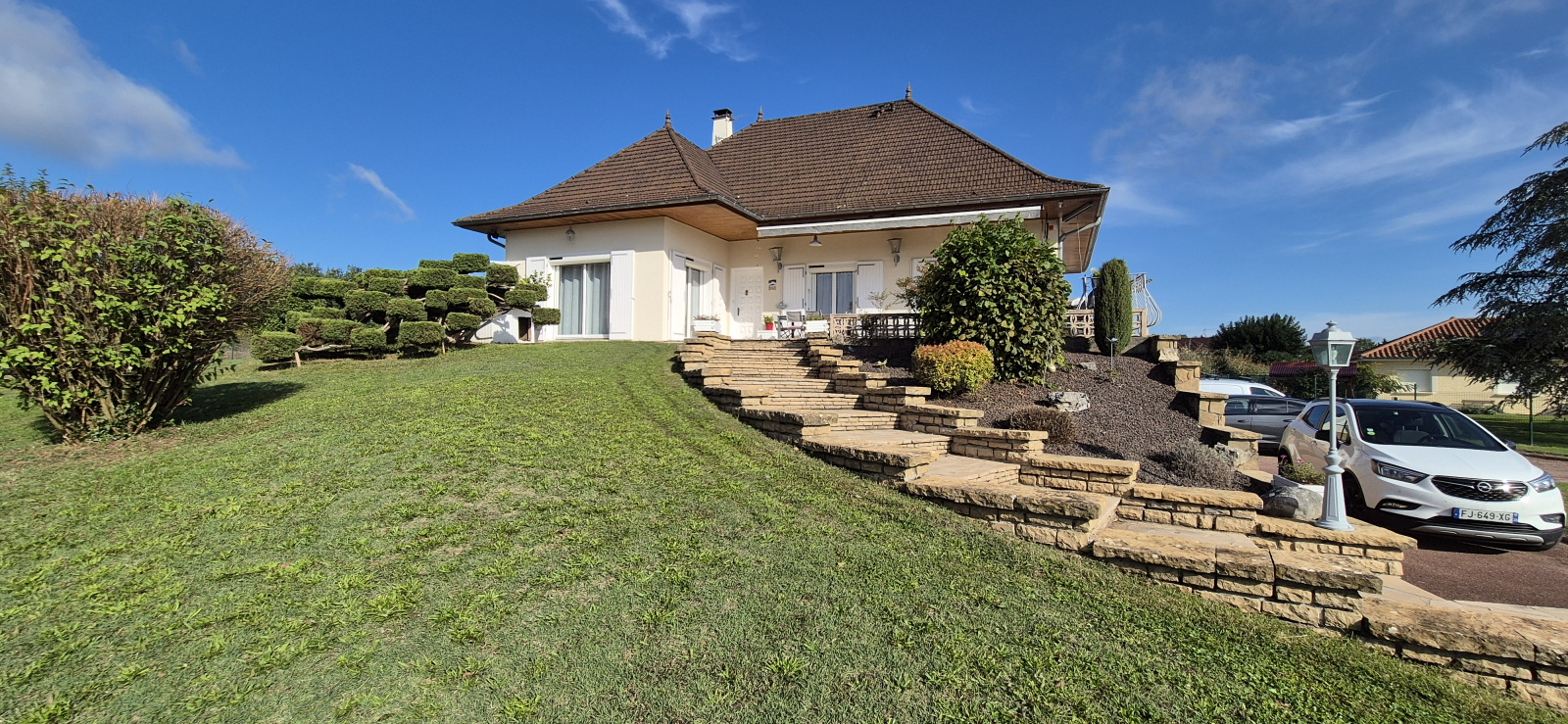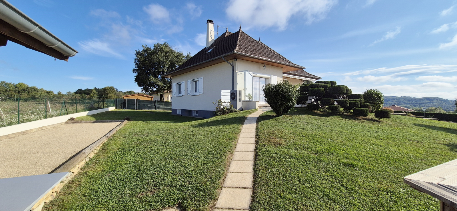 Venez découvrir cette belle et robuste maison de construction traditionnelle, d'une superficie de 138 m² habitables et 154 m2 au sol, édifiée sur un sous-sol de 114 m². Elle est implantée sur un magnifique parc clos et arboré de 2 652 m², entièrement constructible, offrant une vue extraordinaire sur les montagnes, la nature, la chapelle de Cozance et les tours du château de Serrière. Un panorama dont on ne se lasse pas, et qui change au fil des saisons.