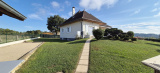 La maison se compose, au rez-de-chaussée, d'un espace de vie spacieux de 68 m² avec une cuisine ouverte entièrement équipée, donnant sur une terrasse de 64 m² avec vue sur le parc arboré et les montagnes. Vous y trouverez également deux chambres de 11 et 14 m², toutes deux bénéficiant d'une belle exposition, ainsi qu'une salle d'eau et un cabinet de toilette.