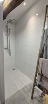 La maison est dans un très bon etat général : toiture saine et très bien isolée, les menuiseries ont été remplacées avec des volets roulants électriques, le système de chauffage est assuré par un poêle à bois et chaque pièce est équipée de radiateurs electriques à inertie de bonne qualité.