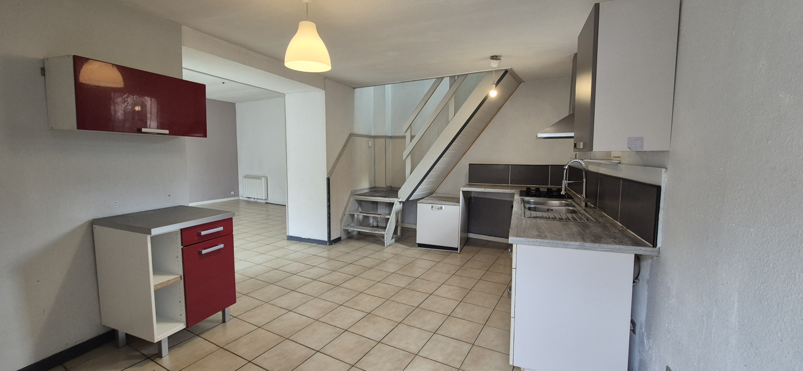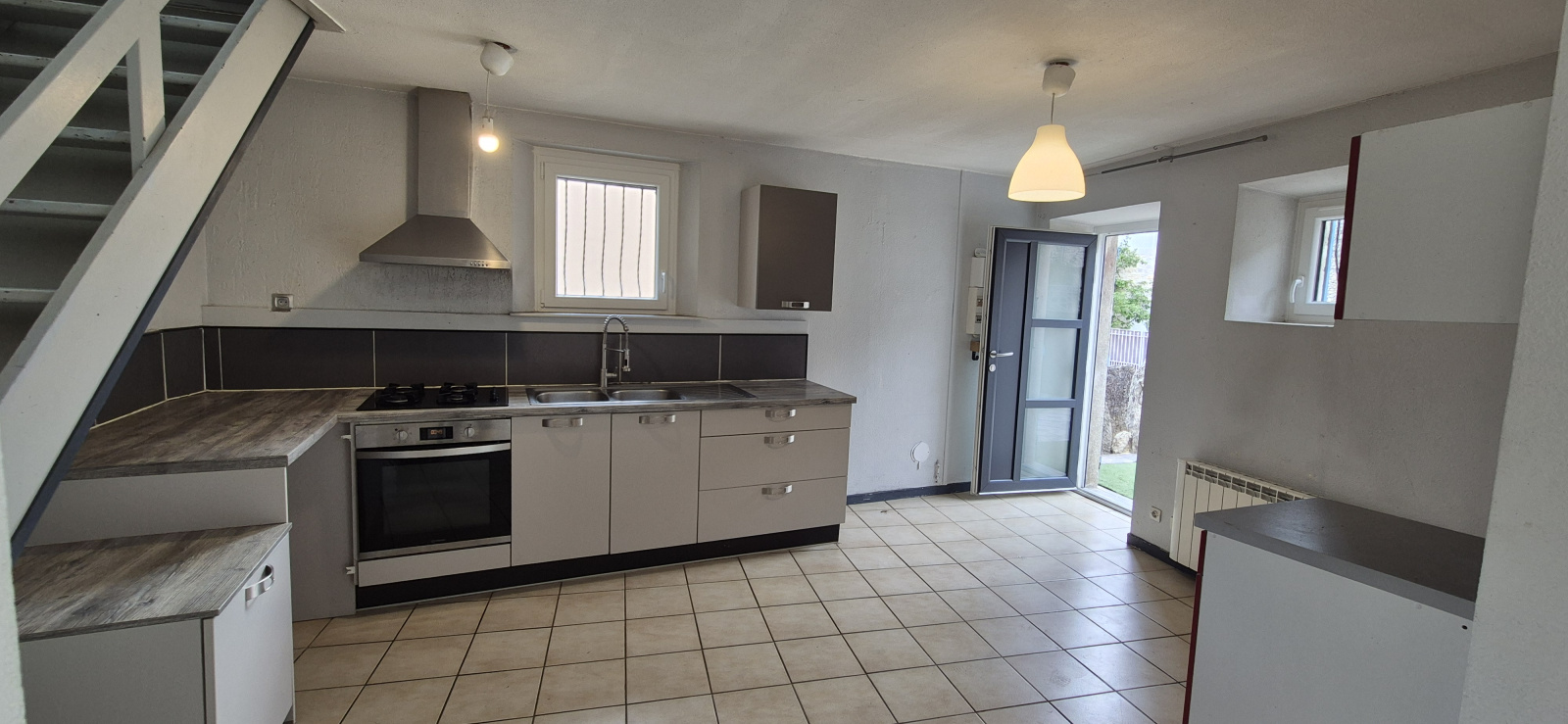 Le rez-de-chaussée se compose d’une cuisine de 15 m² ouverte sur un salon-séjour lumineux de 26,40 m².