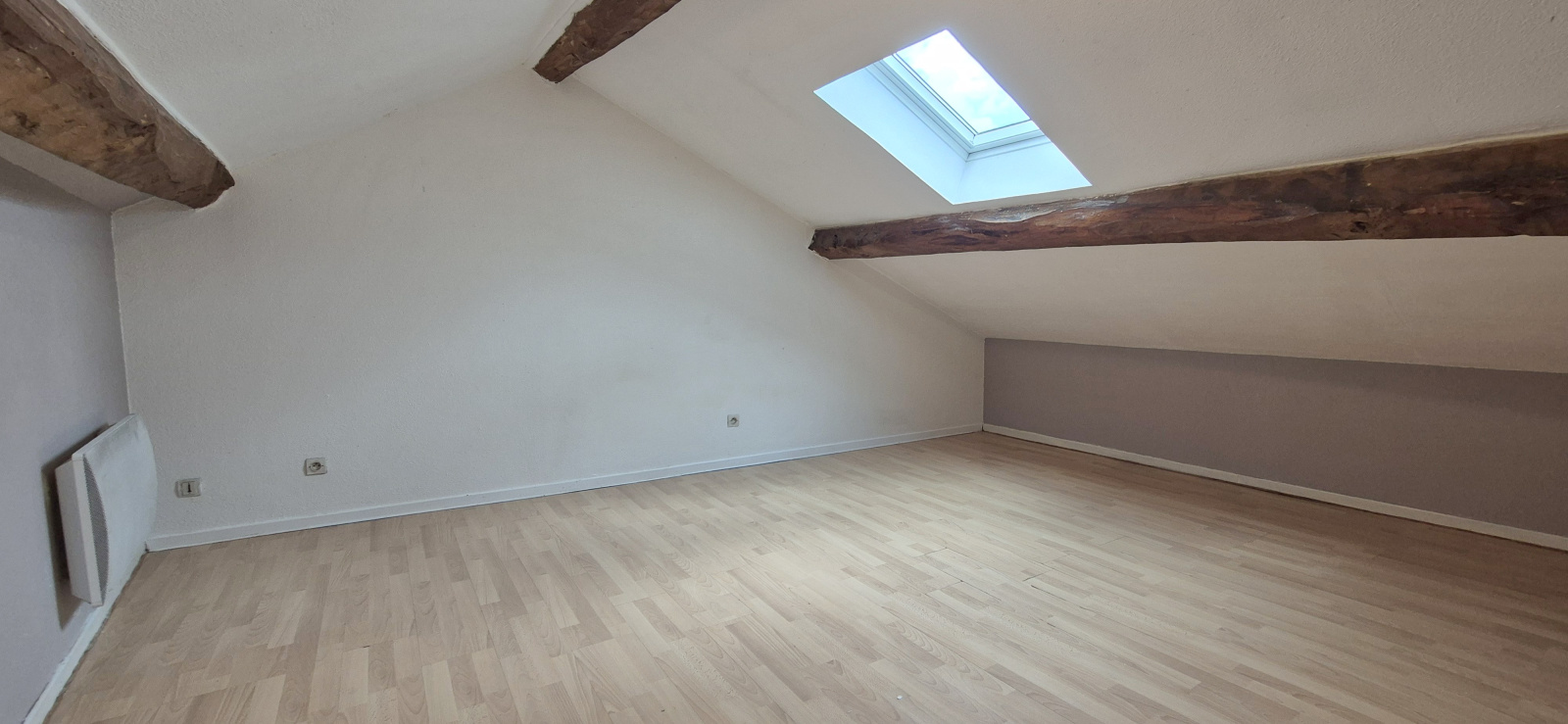 Le deuxième étage, mansardé et baigné de lumière grâce à un Velux, propose une troisième chambre offrant 25 m² au sol (9 m² en loi Carrez).