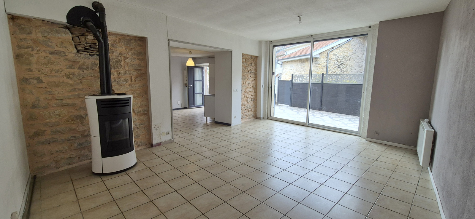 Le bien est équipé d’un système de chauffage combinant un poêle à granulés et des radiateurs électriques.