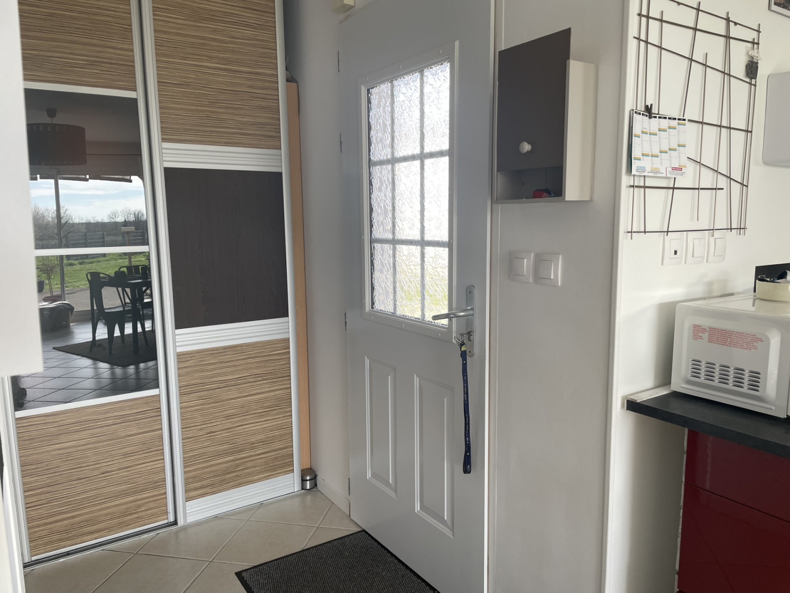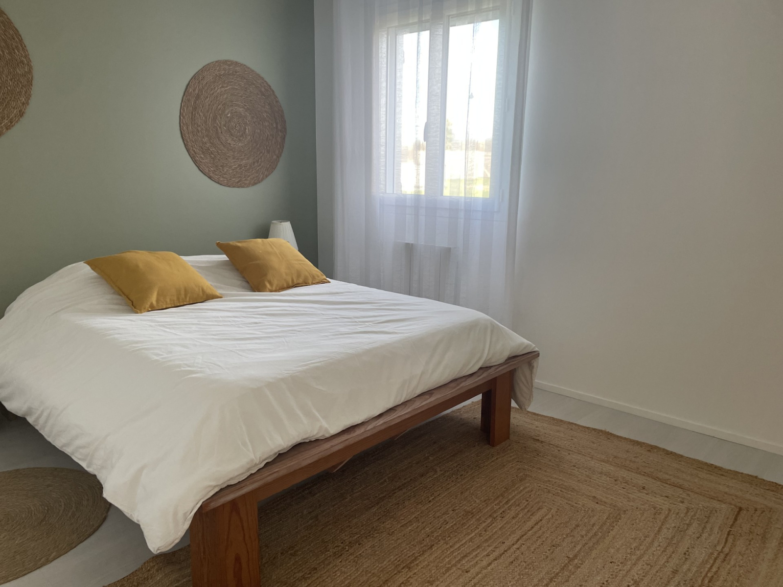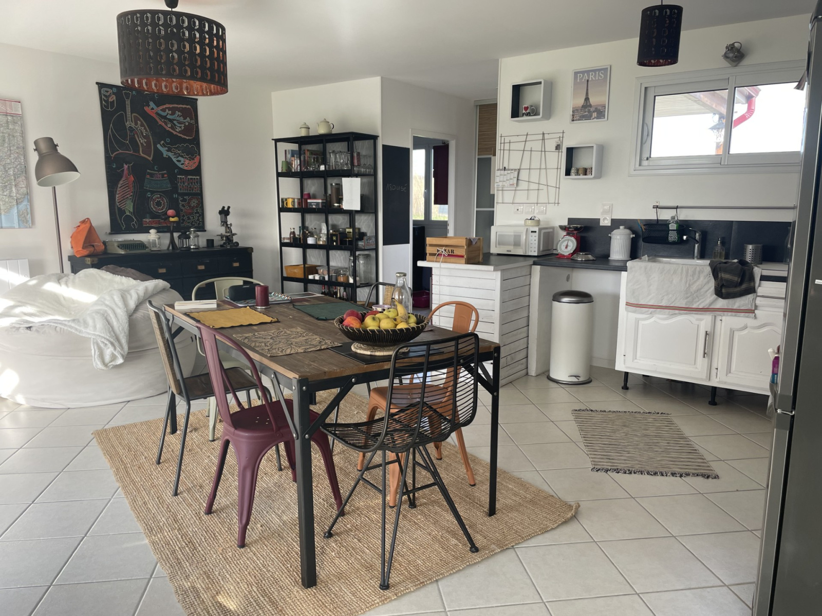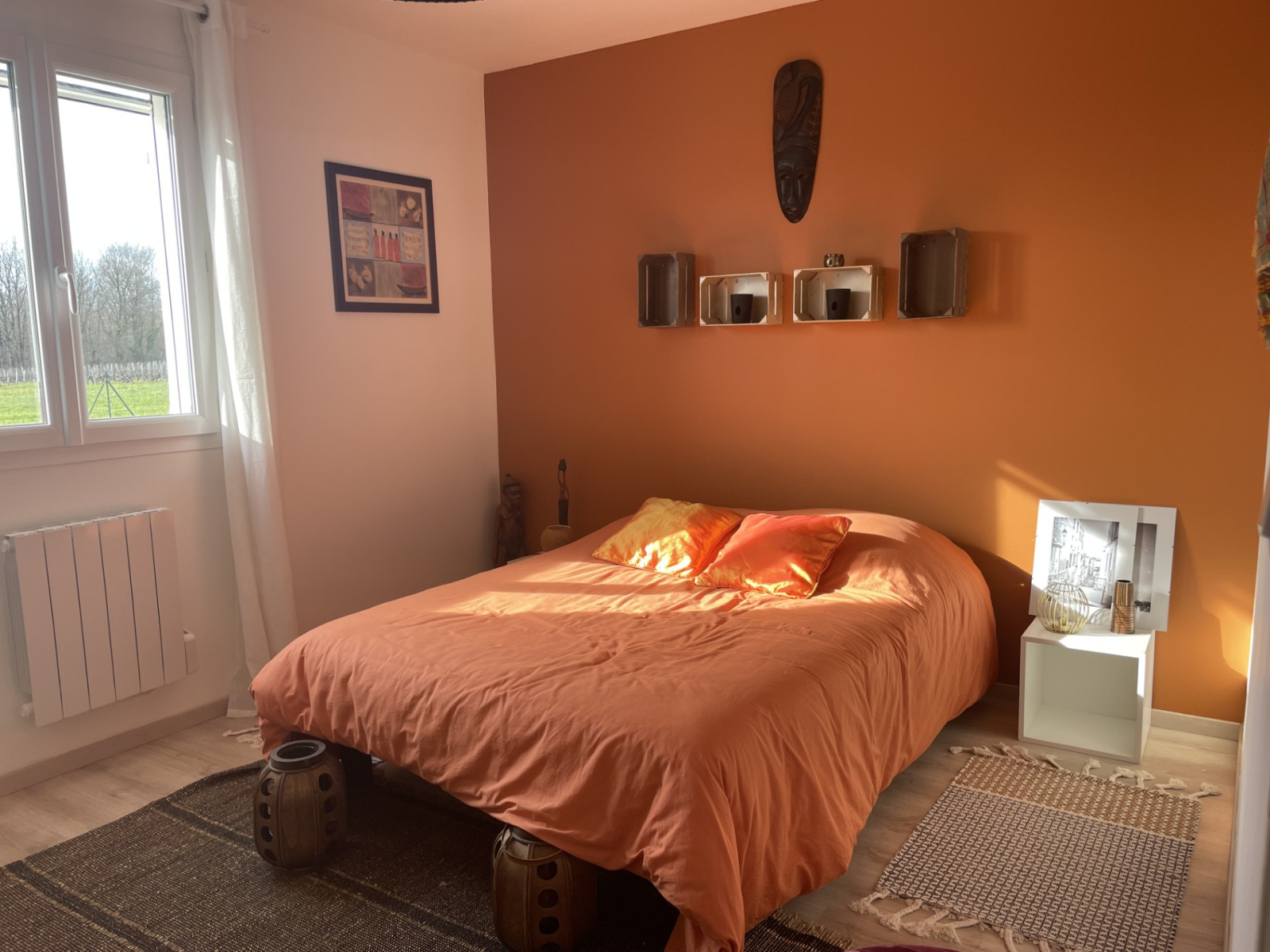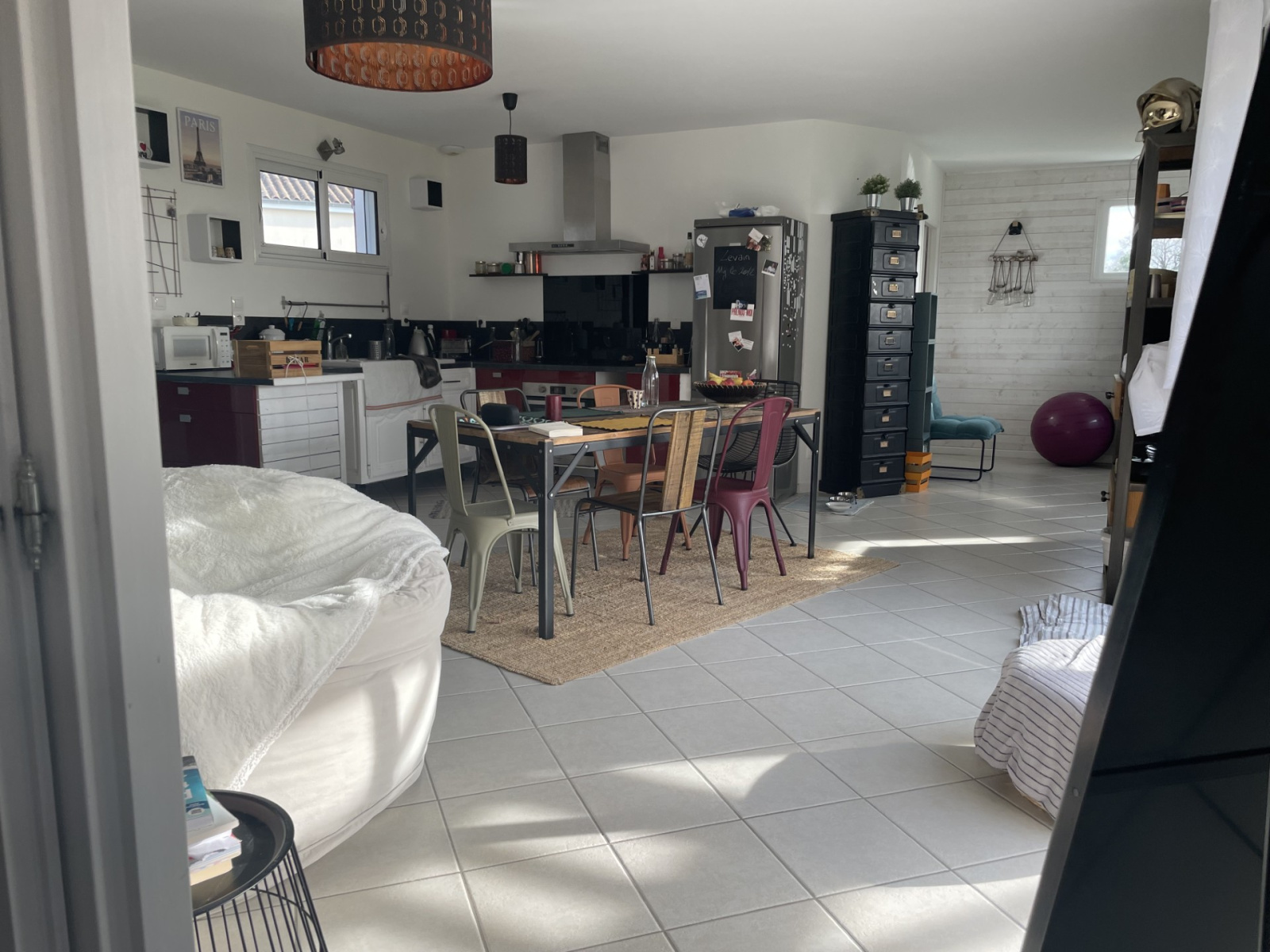 BURIE Nathalie ROUSSEAU vous propose en exclusivité cette maison de 2014 de plain pied en ossature bois en parfait état, extrèmement lumineuse composée d'une entrée avec placard, une belle pièce de vie ,cuisine ouverte sur séjour/salon, 3 belles chambres, toilettes, salle d'eau(douche à l'italienne).Chauffage électrique (DPE en B) assainissement conforme, baies vitrées en alu. Le terrain de 2770 m2 vous offre une vue dégagée. L'ambiance de l'ensemble est cosy. Le terrain est clos, plat,aménagé. COUP DE COEUR