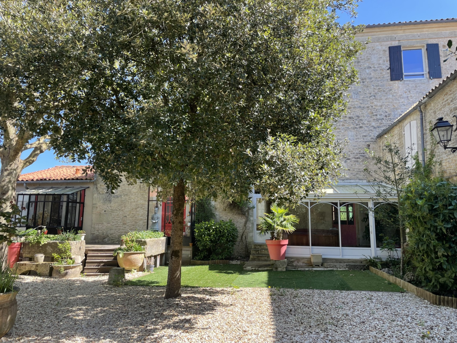 BURIE Nathalie ROUSSEAU vous propose en exclusivité cette magnifique propriété située dans le centre proche de toutes commodités. A seulement 10 mn de COGNAC sans vis à vis, cet ensemble immobilier composé de la maison principale de 316 m2 , de nombreuses dépendances(environ 250 m2) chai, garage, cave, terrain clot et arboré de 4000 m2 vous permet de profiter d' un cadre idéal. La maison est reliée au tout à l'égout, équipée d'une pompe à chaleur, double vitrage, toiture refaite récemment, 6 chambres, salle de bains, 3 salles d'eau, 5 toilettes,salle à manger, double salon, bureau, cuisine équipée. COUP DE COEUR