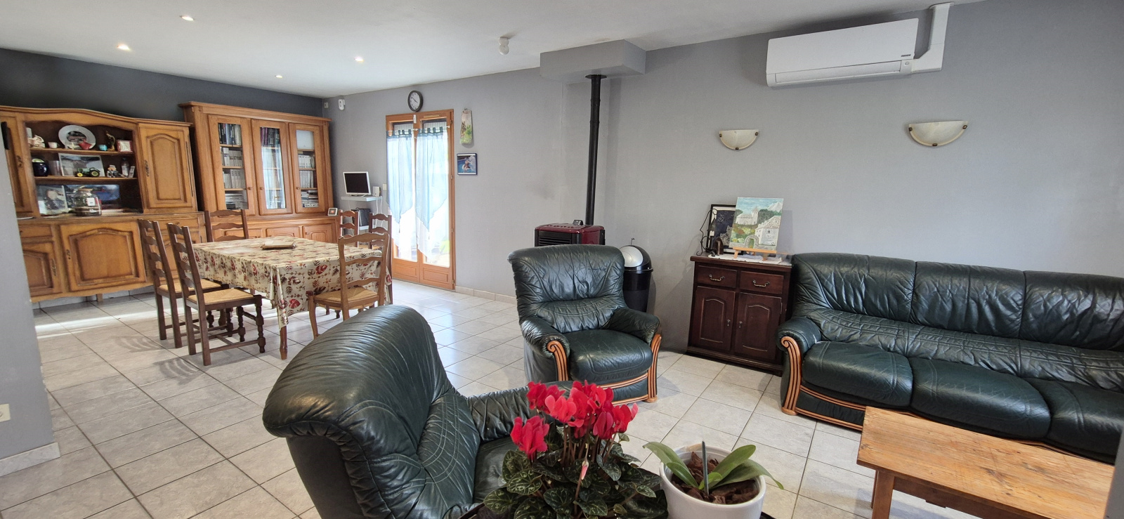 Vous disposerez également d'un poêle à granule de bois dans le séjour, d'un adoucisseur d'eau et de volet roulant électrique récemment installé en plus des volets bois.
