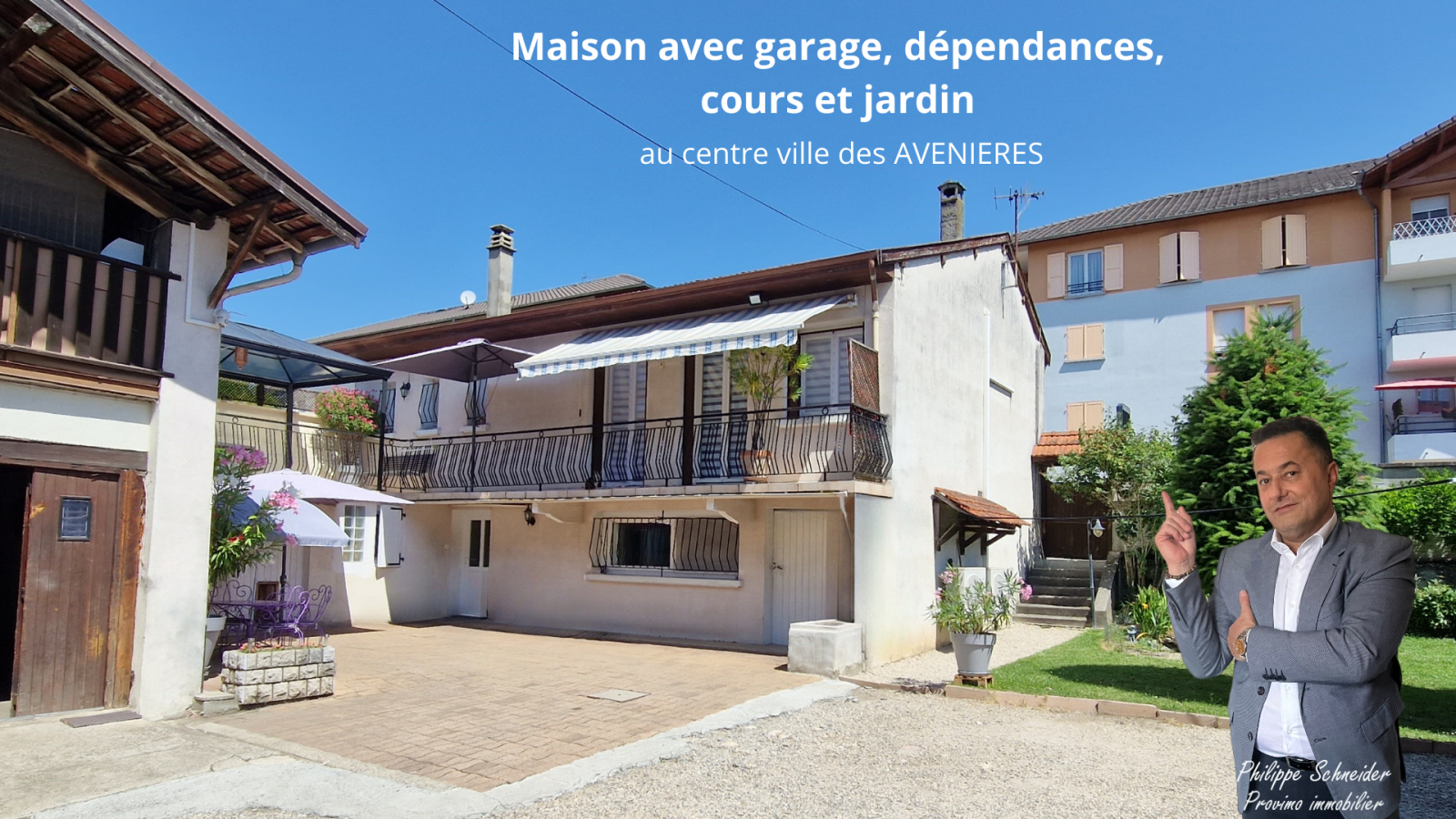 Située au coeur de la commune des Avenières à deux pas des commerces et à seulement 10 km de l'autoroute A 43 Lyon, Chambéry, venez découvrir cette maison de 109 m2 habitables de 3 chambres, implantée sur un terrain clos de 466 m2, agrémentée d'un balcon, d'une terrasse de 20 m2 avec tonnelle en aluminium, d'une terrasse couverte 30 m2, de deux garages de 30 et 21 m2, d'un hangar de 27 m2, d'un local de rangement de 10 m2 et de deux pièces de rangement sous la terrasse. La maison est composée au rdc : d'une chambre de 16 m2 avec un bureau attenant de 10 m2, d'une salle d'eau, d'une buanderie, de caves de 10 et 8 m2. Au premier étage, vous trouverez : une cuisine de 10 m2, un salon séjour de 25 m2, le tout pouvant être facilement ouvert l'un sur l'autre pour faire une pièce unique salon séjour cuisine de plus de 35 m2 avec accès aux terrasses et balcon, deux chambres de 10 m2, une salle d'eau et un cabinet de toilette. Le chauffage est assuré par : une pompe à chaleur réversible air air couvrant toute la maison sauf la cuisine, une cheminée à foyer fermé, ou bien par le chauffage central au fioul . L'eau sanitaire est assurée par un cumulus électrique.