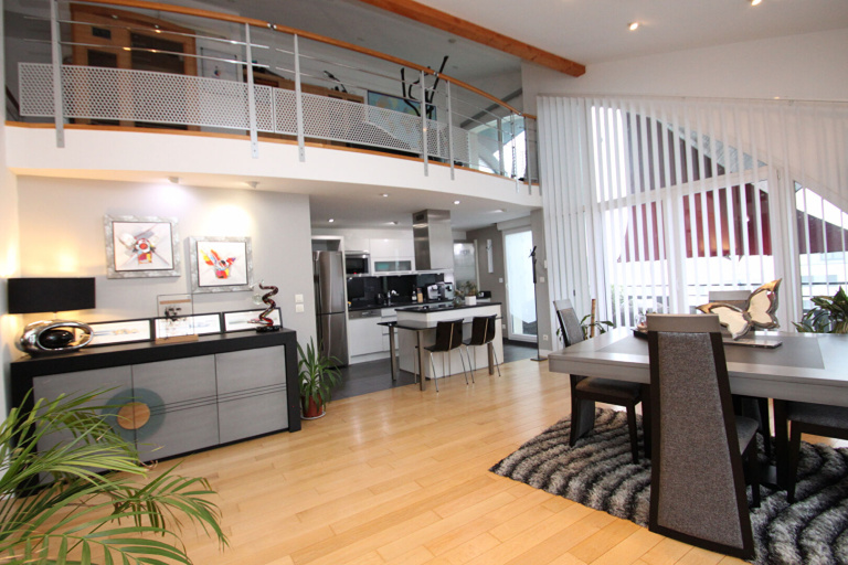 Au n°4 rue des Garennes à Marly , au sein de la Copropriété 'L'ALbatros', Didier Hoffman, Agent Mandataire PROVIMO, vous propose de venir poser vos meubles dans ce somptueux appartement duplex situé au 3 ème et dernier étage d'une résidence récente et sécurisée équipée d'un ascenseur, la porte palière blindée s'ouvre sur une belle entrée et donne accès à une lumineuse pièce de vie de 60 m², intégrant une magnifique cuisine ouverte avec plan de travail en granit et communiquant avec la terrasse exposée sud, 3 chambres, dont une suite parentale avec dressing, une magnifique salle de bains comprenant douche et baignoire, 2 WC, un cellier et de nombreux rangements, sur la partie supérieure du duplex la troisième chambre se trouve dans le prolongement de la mezzanine qui fait office de bureau, un 2ème WC vient achever l'équipement de cet appartement climatisé et doté également d'un chauffage électrique par le sol. A l'extérieur un double garage dont les portes sont motorisées, la deuxième terrasse est accessible par une des chambres ainsi que par le séjour. Volets Motorisés .