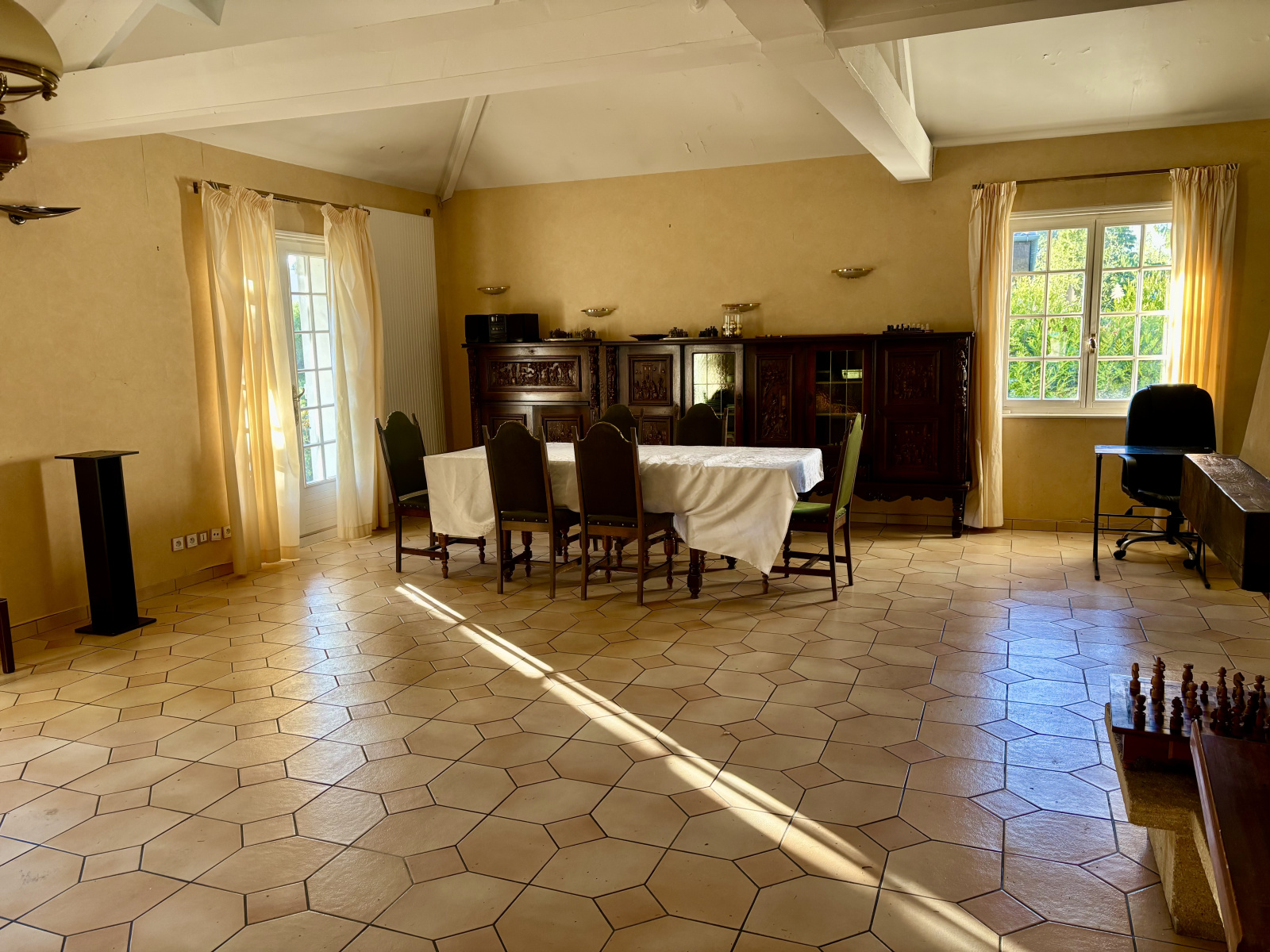 - d'un séjour cathédrale avec cheminée, et un accès direct au jardin,