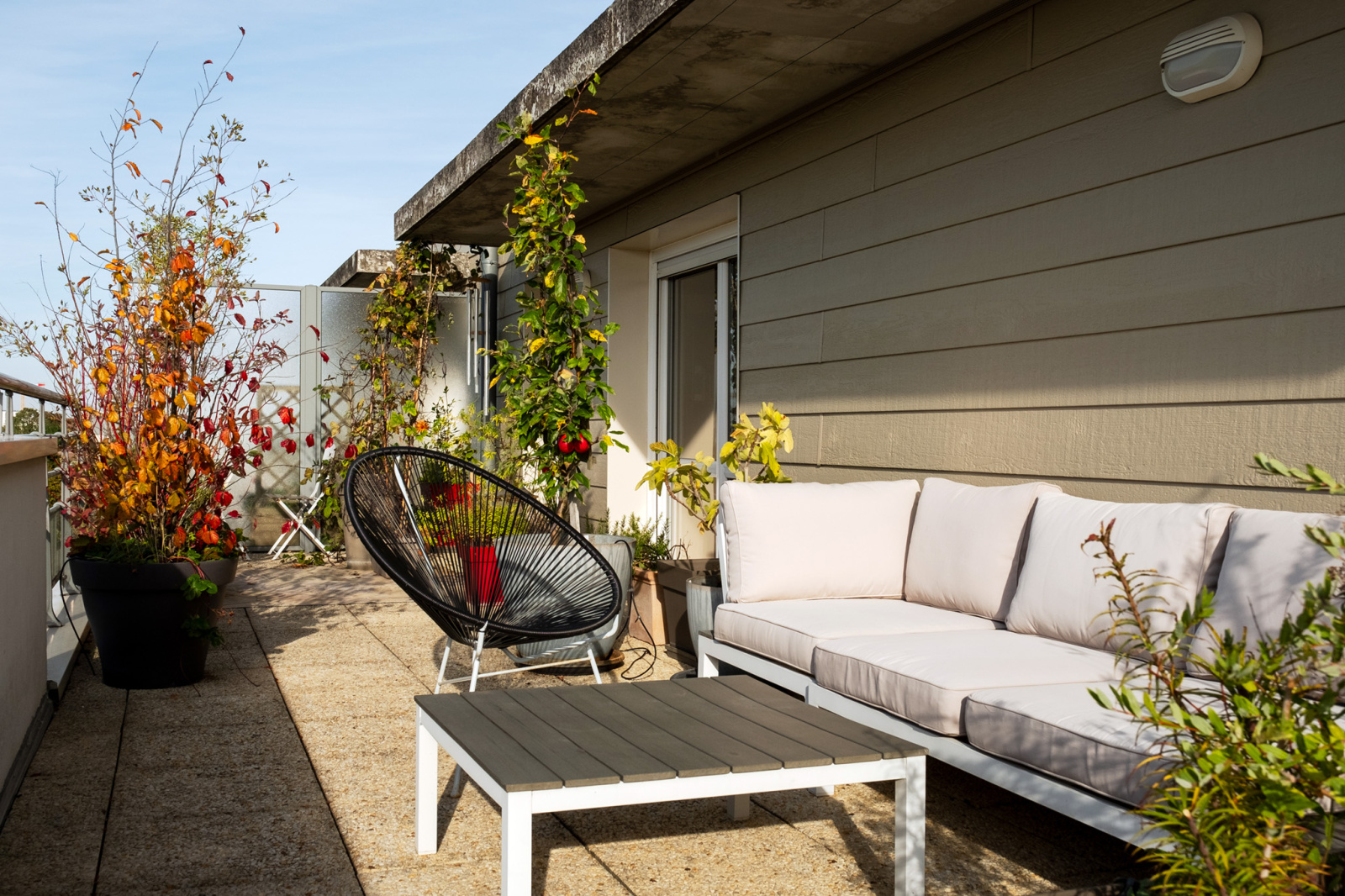 Il offre un hall d'entrée, une cuisine aménagée et équipée, un salon-salle-à-manger, un dégagement, 2 belles chambres (10.4 et 14.3 m2), une salle de bains avec baignoire et des wc séparés. L'ensemble des espaces de vie et des chambres sont bordés par une magnifique terrasse qui surplombe la résidence. Situé en effet au dernier étage avec ascenseur, l'appartement et sa terrasse très buccolique offrent une vue panoramique sur la ville d'Amiens. Dépaysement inattendu en pleine ville et un calme tout aussi incroyable.