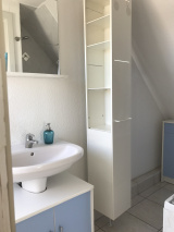 Il se compose d'un salon séjour de 25 m2 avec poutres apparentes, d'une cuisine semi équipée de 7 m2 et à l'étage une chambre de 18.73 m2 au sol (6 m2 carrez) ainsi qu'une salle de bain avec toilette de 5 m2.