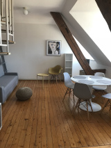 Carole Fusser vous propose à Altkirch un appartement 2 pièces de type duplex de 57 m2 au sol et 39 m2 carrez au deuxième étage d'une maison de Maître nichée dans un parc clos et arboré.
