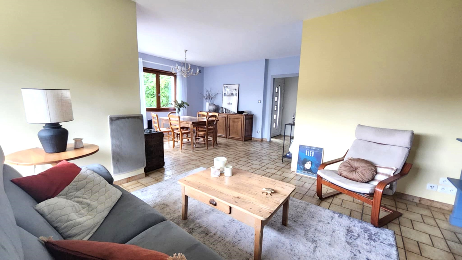 Ce bien vous offre une cuisine équipée, une salle de vie lumineuse, 4 chambres, 2 salles d'eau, un sous sol complet avec cave et garage, dans un environnement calme.