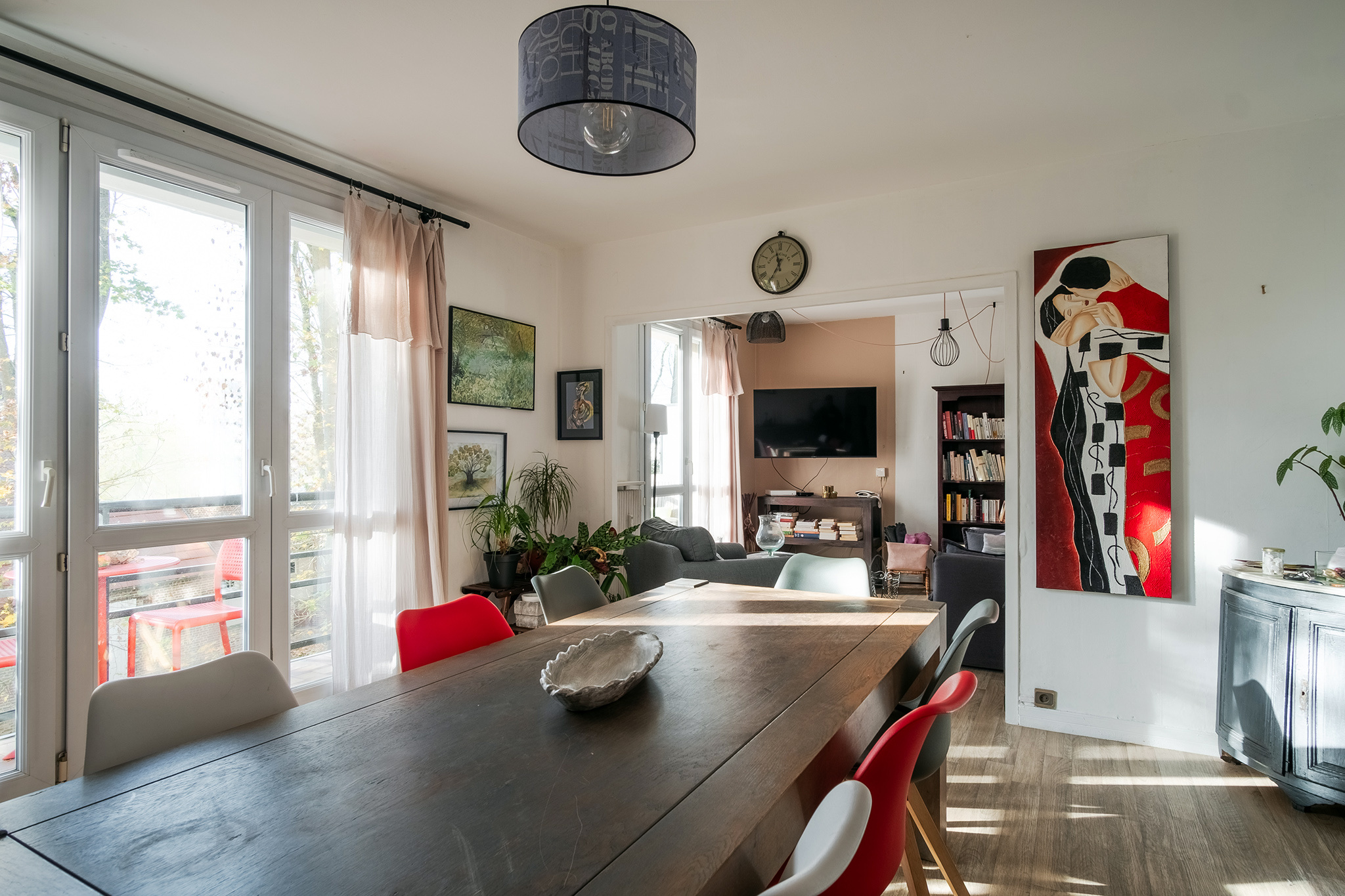 Il offre entrée, cuisine aménagée et équipée ouvrant sur séjour et sur jardin, salle d'eau, wc séparés et deux chambres. Garage attenant à l'appartement de 17,23 m2 et jardin privatif avec abri de jardin et cellier indépendant.