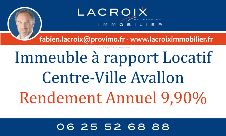 Centre-ville d'Avallon Immeuble de rapport, composé de quatre appartements d'un rendement brut annuel de 9,90%. Le bien est élevé en partie sur cave, comprenant en rez-de-chaussée un studio (accès sur rue), un hall d'entrée avec interphone qui mène aux autres appartements. Au rez-de-chaussée dans le hall , 4 box de stockage pour chaque logement et une pièce non exploitée. Au premier étage, un F3, un duplex type F2 et au deuxième étage un F3. À ce jour l'ensemble des appartements est loué.