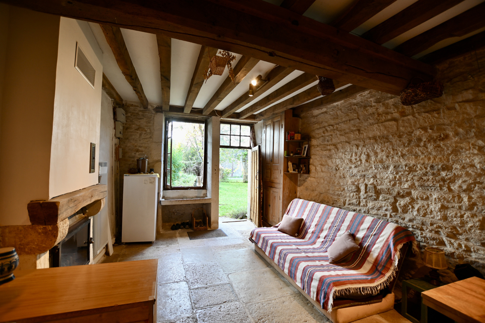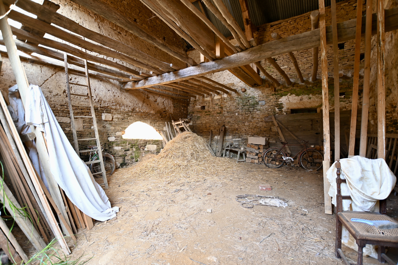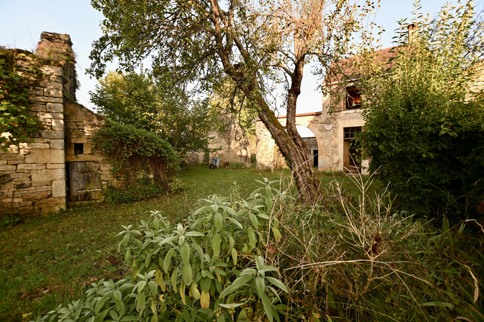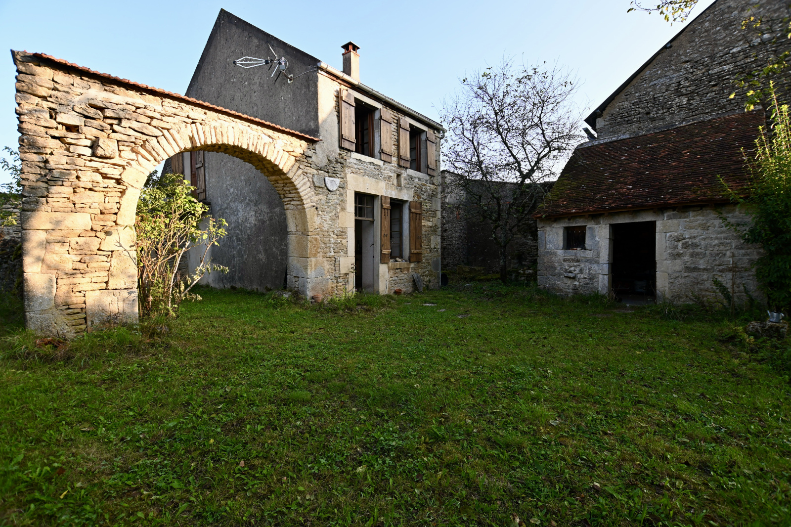 Entre Avallon et l'Isle-sur-Serein. Ancien corps de ferme avec de nombreuses granges, ateliers et caves voûtées. Cette propriété bénéficie d'un jardin et d'une cour. L'habitation comprend une entrée sur une cuisine ouverte donnant sur le séjour équipée d'un insert, un dégagement, un WC indépendant et une salle de bains. À l'étage une grande chambre avec accès sur une terrasse. Bel ensemble immobilier avec de nombreuses possibilités d'extension habitable ou de stockage (véhicules, mobilier, etc.) À découvrir pour les amoureux de la pierre et de la tranquillité. Le bien est raccordé au tout à l'égout.