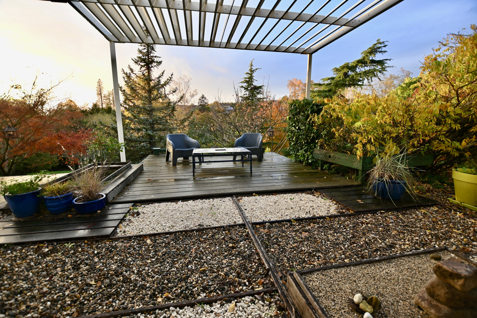 À l'extérieur, le bien vous offre un jardin de 6 174 m² avec 3 chalets, un pour se délacer face au plan d'eau, un pour la méditation et le troisième proche de l'espace potager, le terrain offre un très bel espace, avec également sa terrasse qui surplombe ce jardin a l'ambiance ZEN.