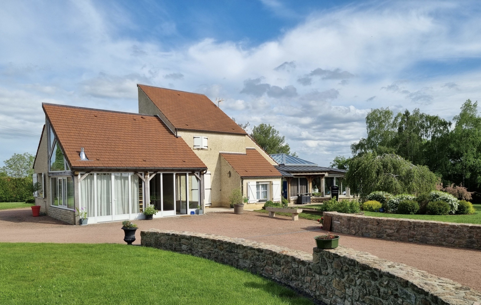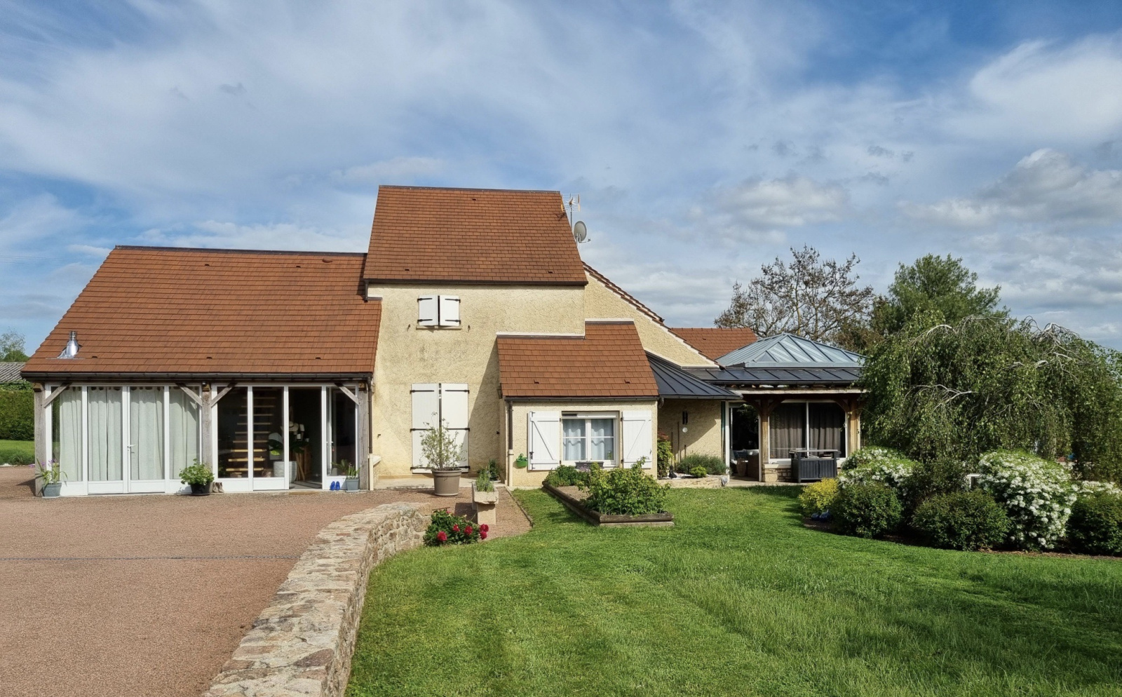 Dans un village avec les commerces de proximité, à 15 minutes de la gare TER bourgogne et 10 minutes de la sortie de l'autoroute A6. Belle villa contemporaine dans son parc arboré. La bâtisse principale élevée en partie sûr sous-sol comprend, une cave à vin, une salle de jeux, un dégagement cellier et une pièce de stockage avec le local technique de la piscine. Le rez-de-chaussée comprend un hall d'entrée, une cuisine équipée donnant sur la salle à manger, un premier salon, un second grand salon baigné de lumiere avec ces baies vitrée et son dôme vitré, une cuisine d'été, une suite parentale (dressing, salle de bains privative), un WC, une chambre, une buanderie, une salle de spa avec salle de sport en mezzanine. À l'étage un grand palier bureau, un e salle d'eau, un WC, une chambre d'enfant et deux chambres avec leur mezzanine, un espace grenier aménageable. Seconde bâtisse un atelier, un double garage et à l'étage un appartement comprenant une entrée sur une cuisine ouverte, un séjour, une chambre avec sa salle d'eau et un WC. Beau parc arboré, terrasse couverte avec une pergola bioclimatique, une piscine, un jardin et un puits. Pour plus d'informations, je suis à votre écoute.