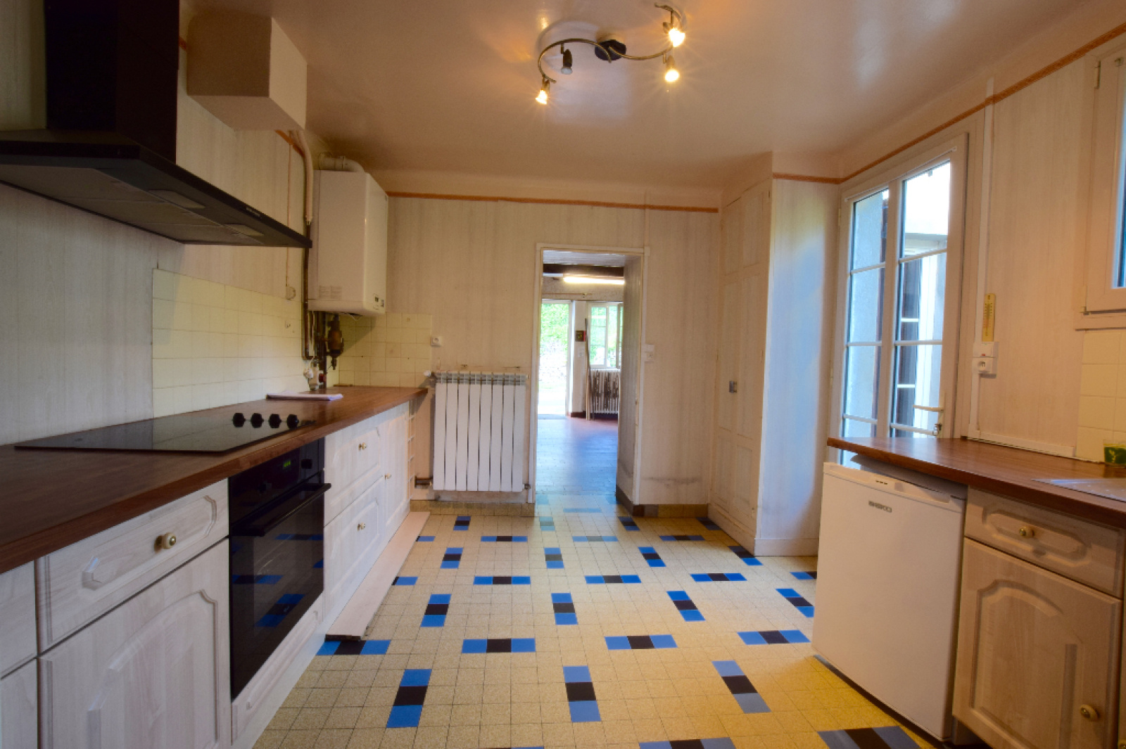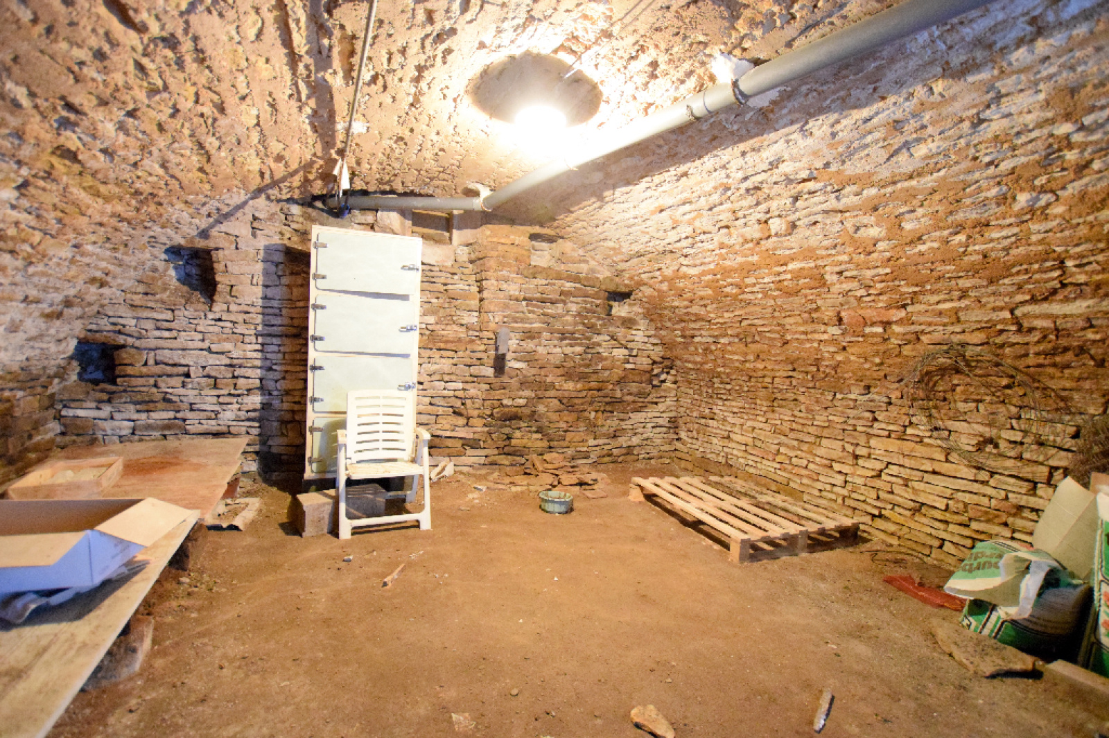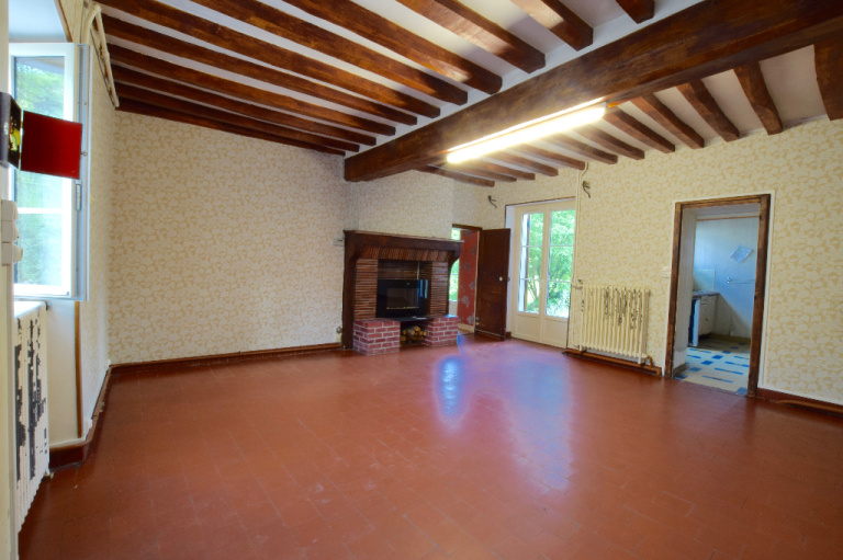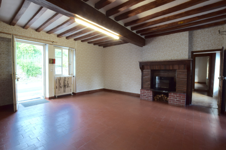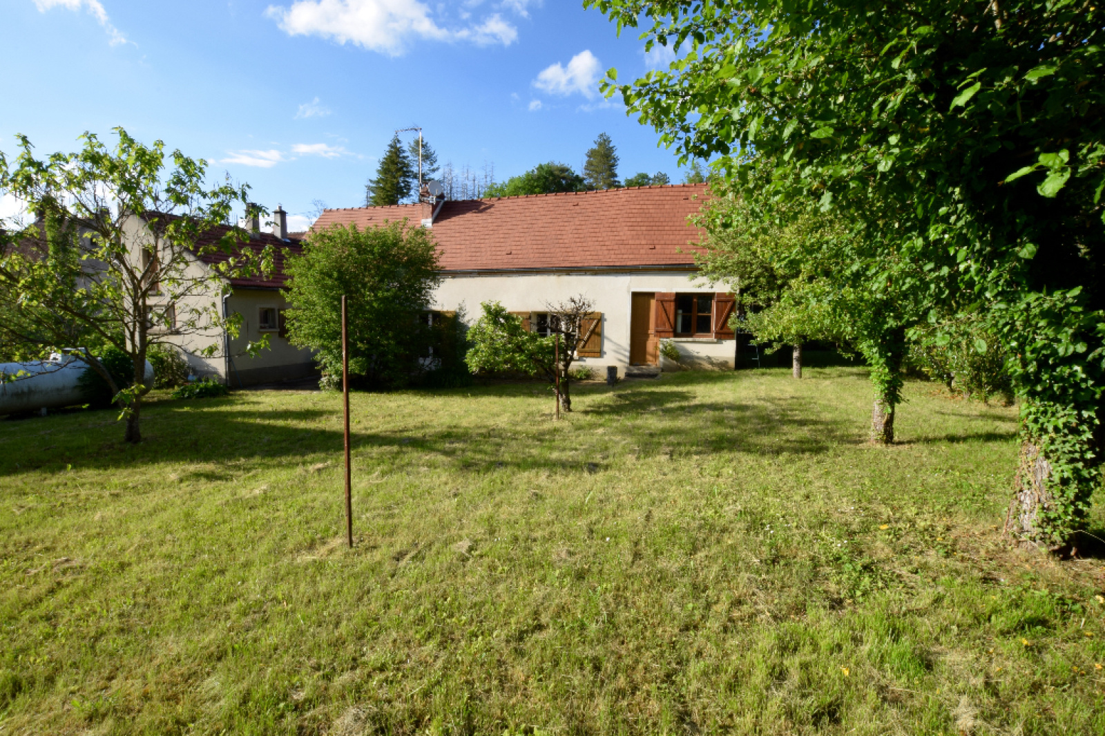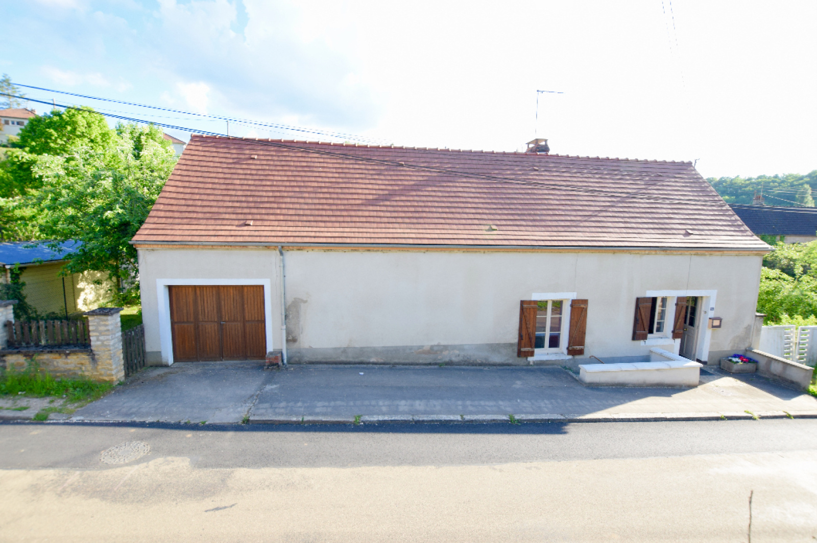 Maison dans village avec commerces et gare TER Bourgogne. L'habitation est élevée sur sa belle cave voûtée. En rez-de-chaussée l'habitation comprend une entrée sur séjour équipé d'une cheminée à foyer ouvert, une cuisine dinatoire, une salle d'eau, un WC et deux chambres. Un garage atelier avec grenier. Beau terrain et verger. La toiture a trois ans, fenêtres double vitrage, tout à l'égout et chaudière gaz (citerne) récente.