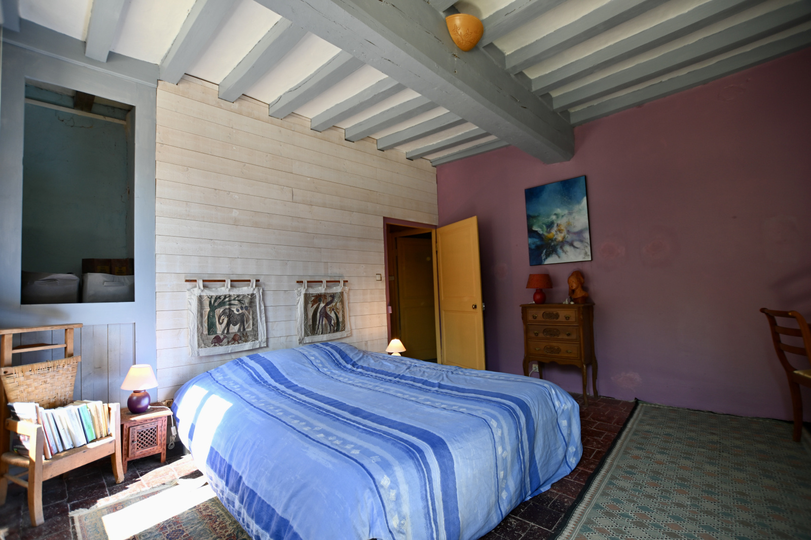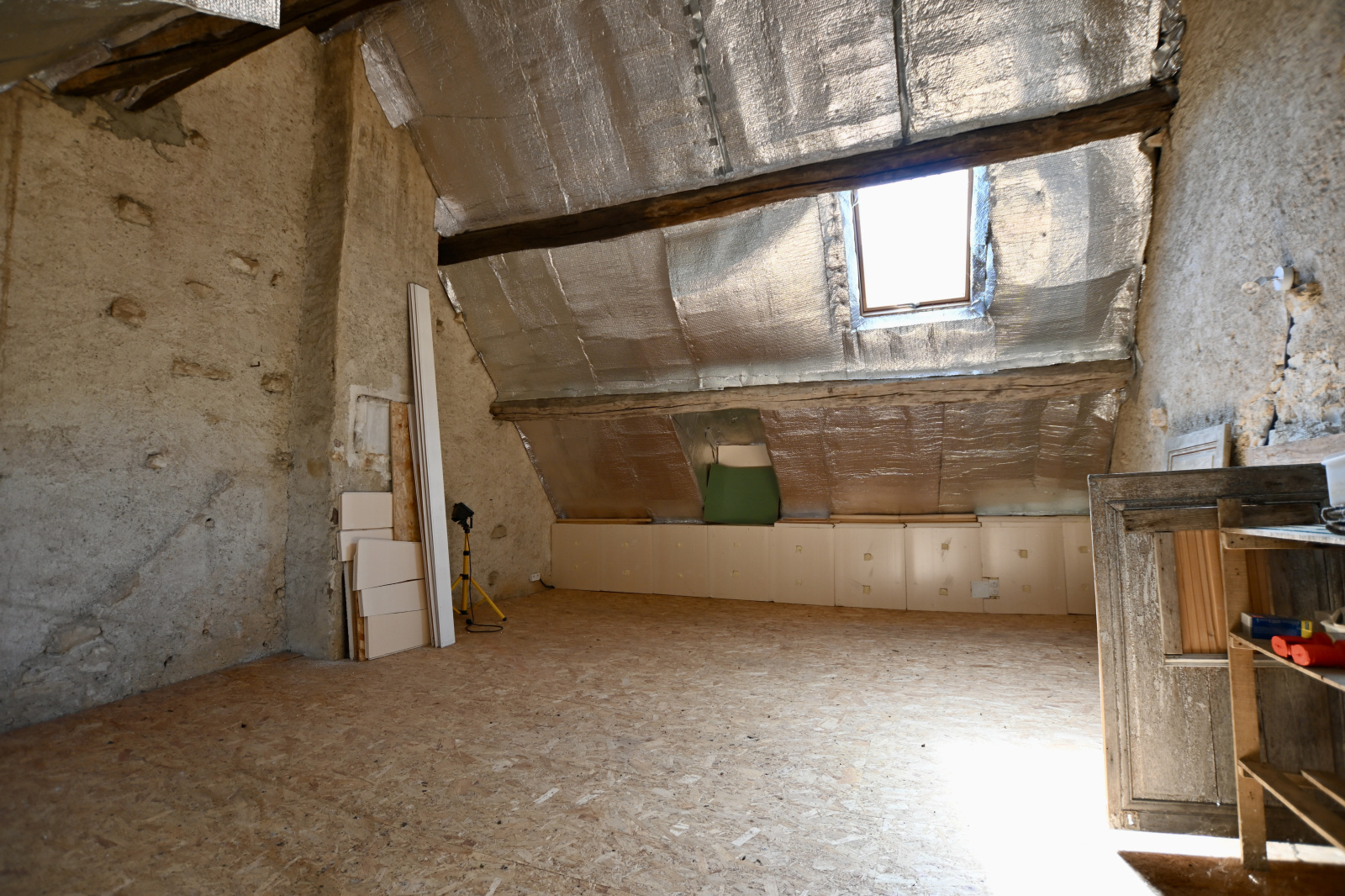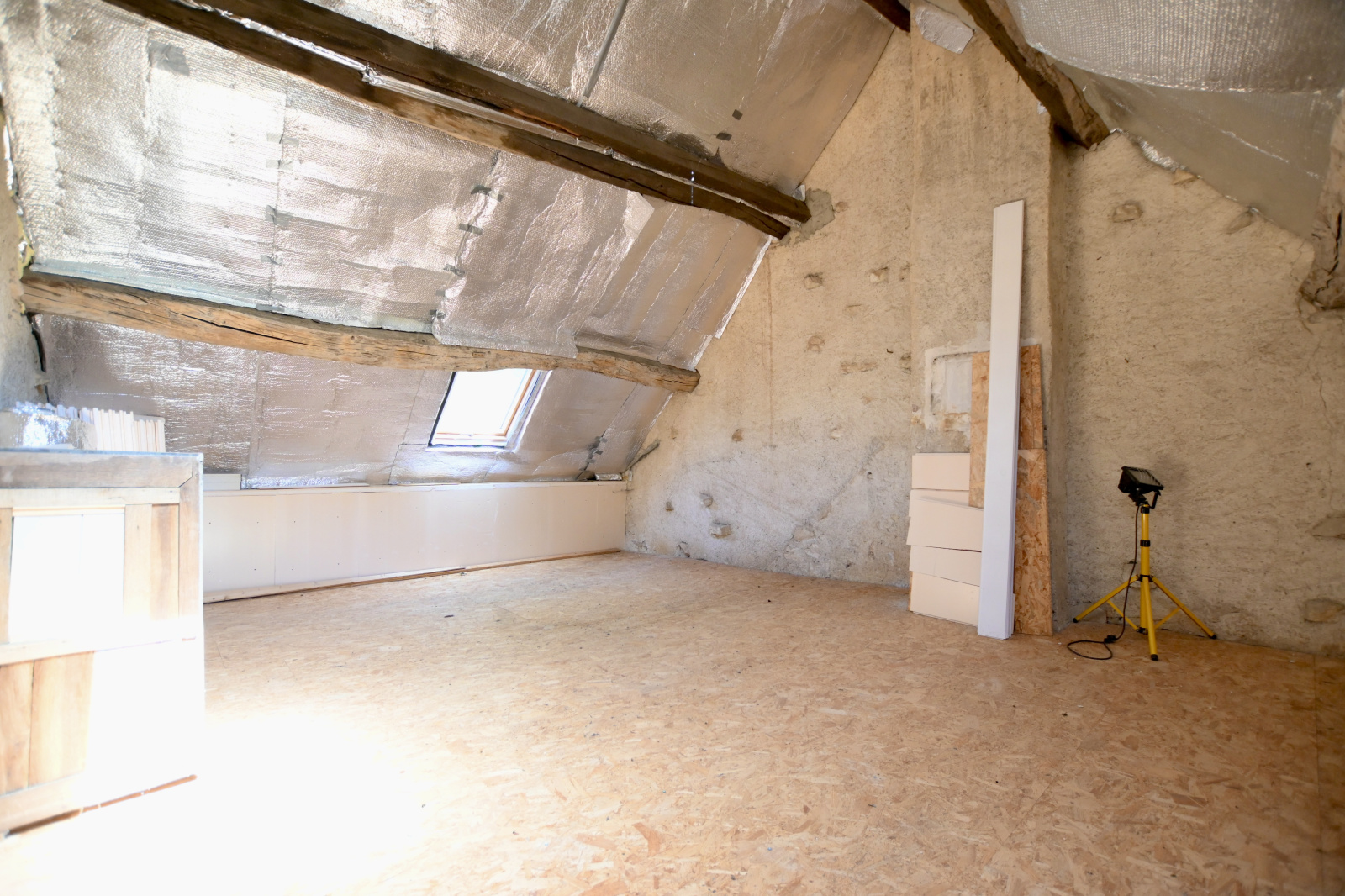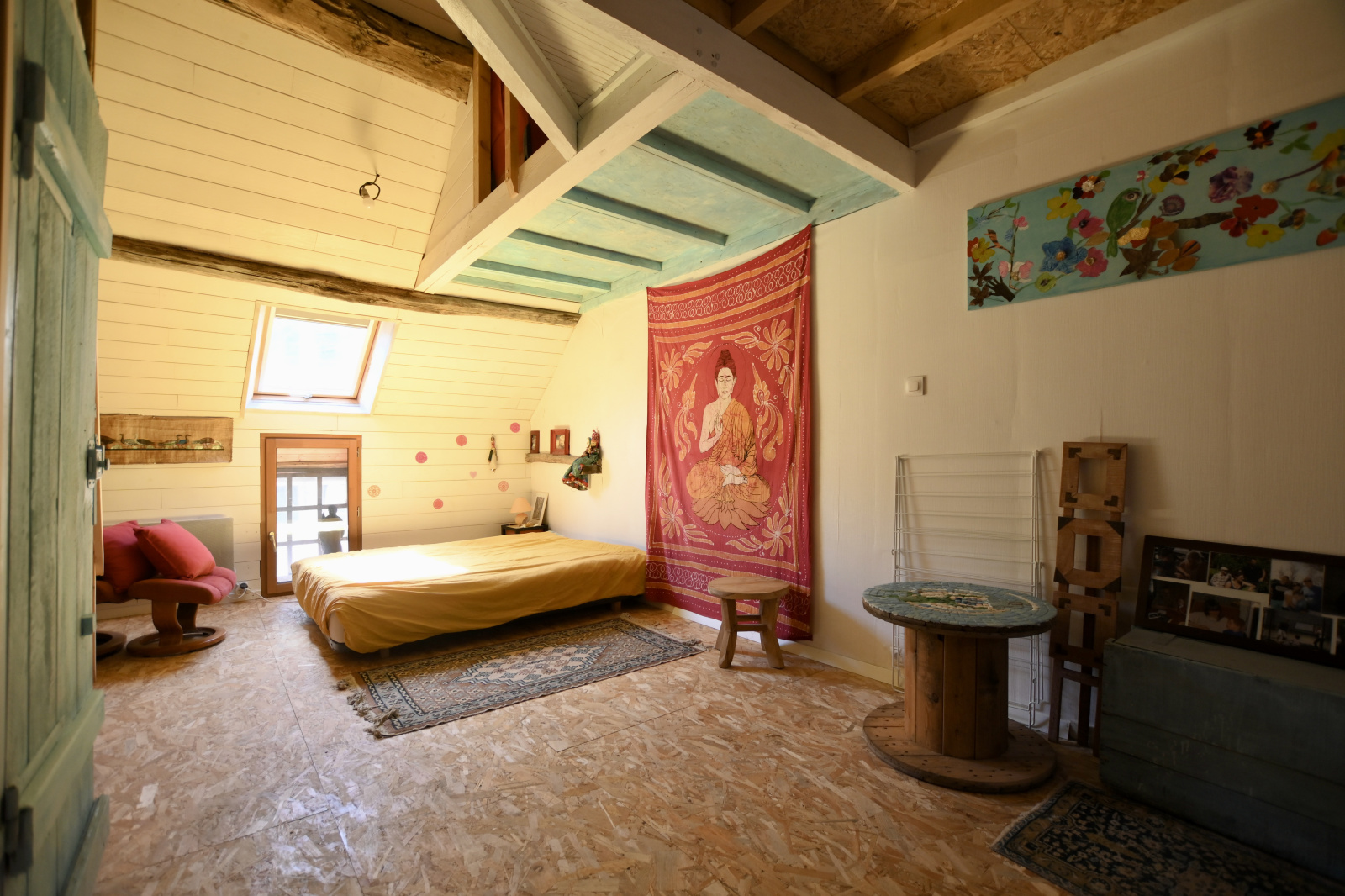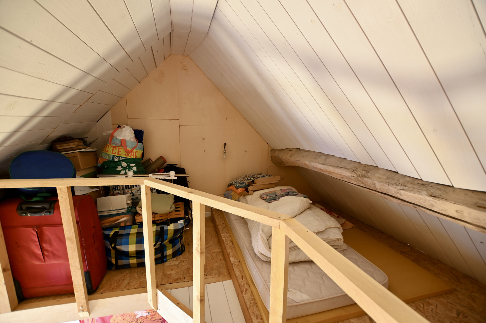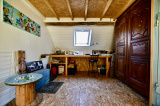À l’étage, le palier distribue deux chambres, dont une avec salle d’eau et WC privatifs. Un demi-niveau supplémentaire révèle une troisième chambre au charme unique avec mezzanine, idéale pour un coin bureau ou une chambre d’enfant, et un grenier offrant encore un beau potentiel d’aménagement.