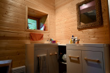Dès l’entrée, le ton est donné : un salon cosy vous accueille, jouxté par une première chambre. Un dégagement mène à un jardin intime, parfait pour les beaux jours. En demi-niveau, la pièce de vie principale séduit par sa convivialité : une cuisine ouverte sur salle à manger, baignée de lumière et réchauffée par un poêle à bois, prolonge la sensation d’espace et de confort. On y trouve également un dégagement pratique, un espace buanderie avec WC et lavabos, ainsi qu’un placard de rangement.