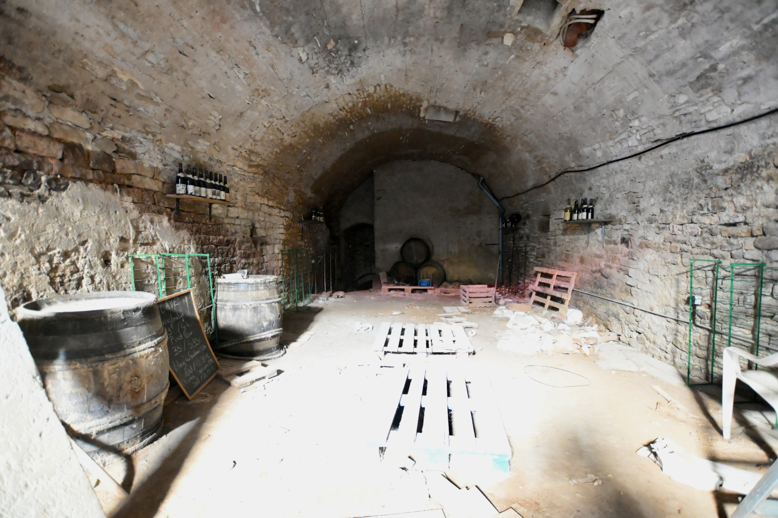Le bâtiment principal est élevé sur ces grandes caves voûtées, le rez-de-chaussée comprend deux grandes pièces, une cuisine et sanitaire.