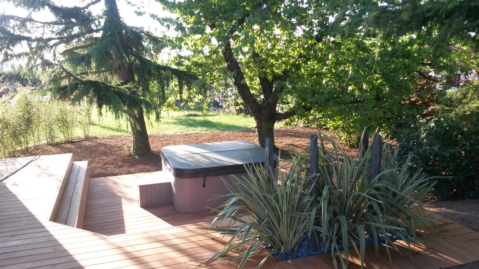 Le terrain de 1400 m² est plat,clos et arboré, l'endroit est vraiment calme tout en bénéficiant de toutes les commodités de la ville.