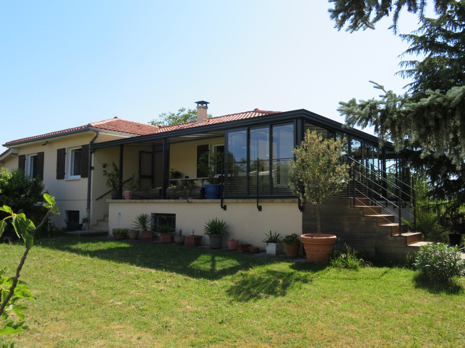 Ce bien vous offre 5 chambres, une cuisine equipée ouverte sur un salon et sur un veranda d'où vous admirez la chaine des Alpes, une salle de bain, 2 salles d'eau, un sous sol et un garage (CAMPING CAR BIENVENU), 2 terrasses et le jacuzzi,