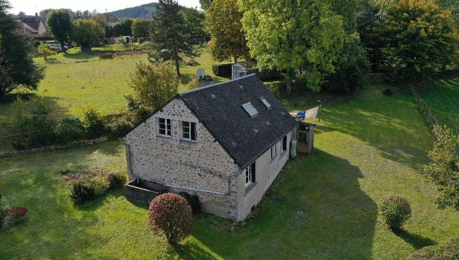 Parc Régional du Morvan, proche de Quarré-les-Tombes, de Dun-les-Places, de Vézelay, d'Avallon au calme dans la nature avec vue panoramique. Maison élevée en partie sur une cave voûtée, comprenant en rez-de-chaussée, une entrée avec une penderie, un séjour équipé d'une cheminée à foyer ouvert, une cuisine dînatoire, une chambre, une salle d'eau, un WC indépendant. À l'étage un palier-bureau, deux chambres en enfilade dont une dotée d'un lavabo, et une chambre à finir d'aménager. Attenant à la maison un garage-atelier et dans le terrain un garage en pré-fabriqué. Terrain piscinable dans un secteur sauvegardé et calme.