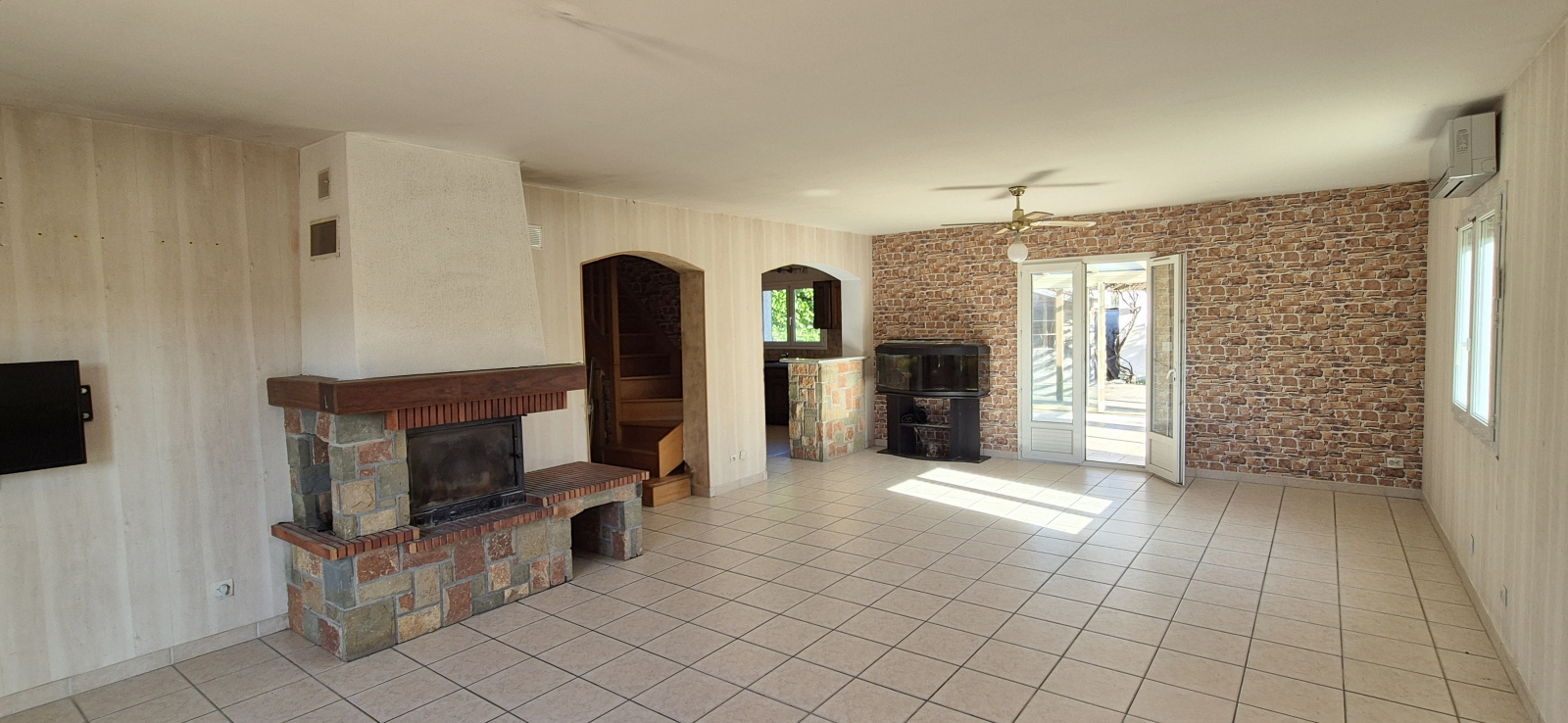 La maison et composé au REZ-DE-CHAUSSÉE : d'un hall d'entrée de 7 m2, d'une cuisine de 12 m2 ouverte sur le salon séjour de 40 m2 traversant et offrant un accès direct à la véranda de 20 m2 et aux 2 terrasses, d'un cabinet de toilette.