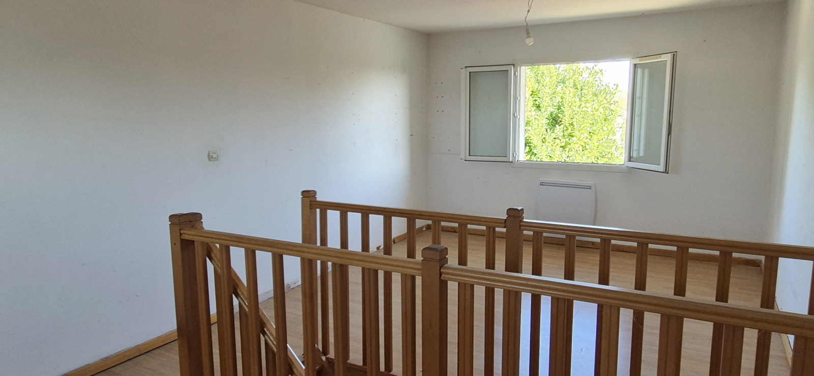 Au premier étage, se trouve un espace aménagé de 22 m2 séparé par l'escalier offrant diverses possibilités.(tel qu'une chambre et un bureau ou un espace parentale chambre plus dressing).