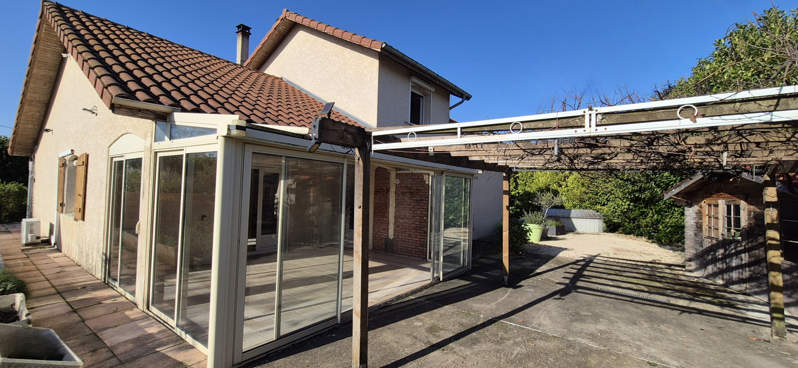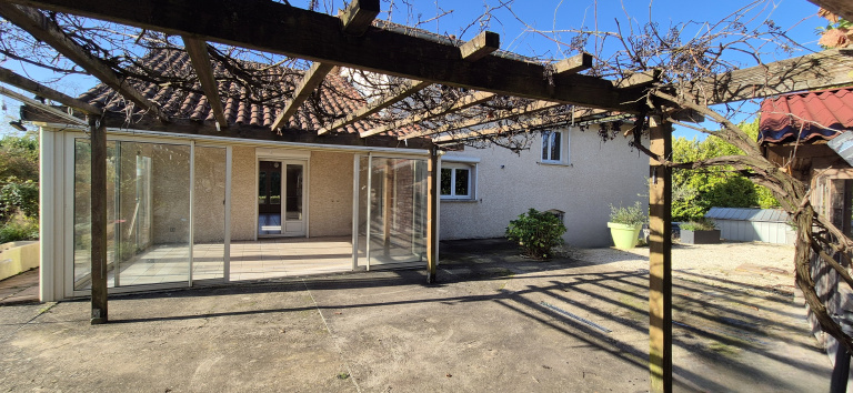 Venez découvrir cette agréable maison construite en 2000 de 136 m2 habitables, avec deux garages en sous-sol, le tous implantées sur un terrain plat de 1558 m2, agrémenté de deux terrasses exposé SUD OUEST et NORD EST, d'une grande cours en enrobé et d'une véranda de 20 m2.