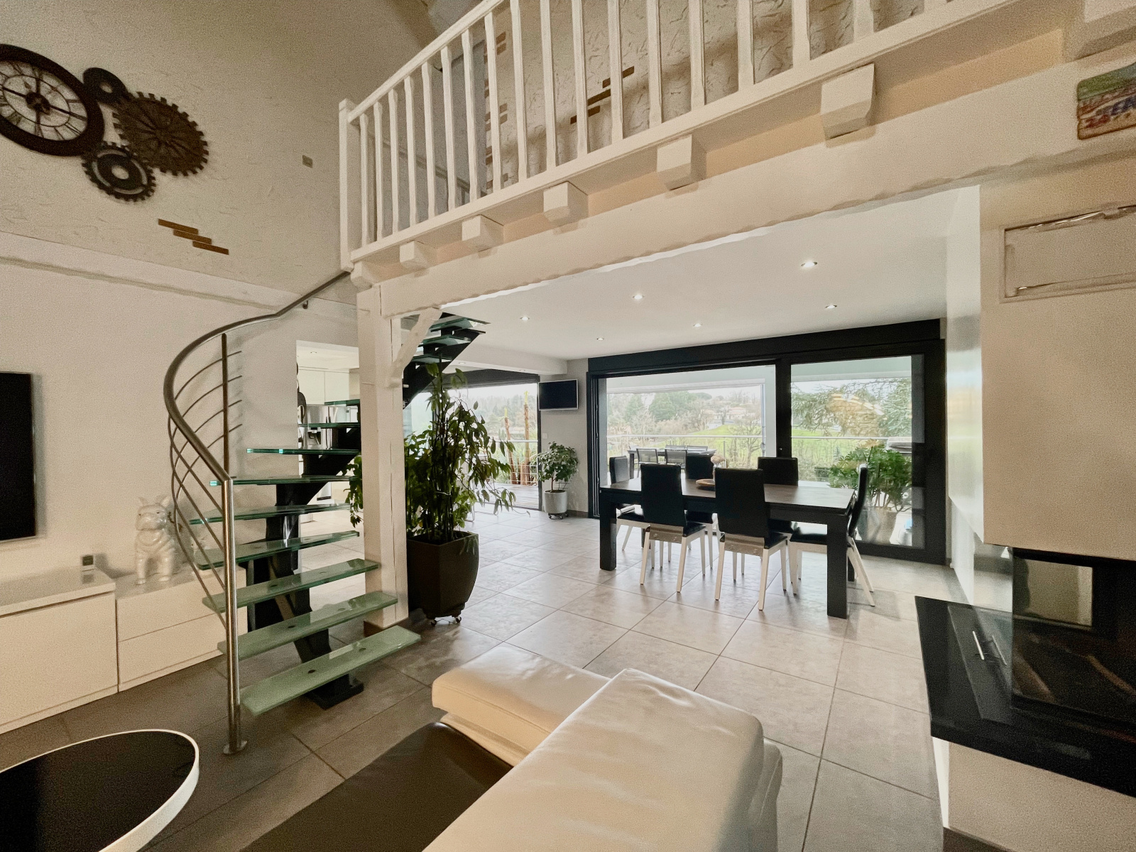 De construction contemporaine, climatisée, c’est sur 130m2 qu’elle déploie ses atouts : 3 chambres dont 2 en Rez-de-chaussée et 1 sur la mezzanine, une immense pièce de vie de plus de 50m2 ouverte sur une large terrasse de 50 m2 elle aussi, face à un merveilleux panorama, idéale pour profiter des longues soirées estivales.