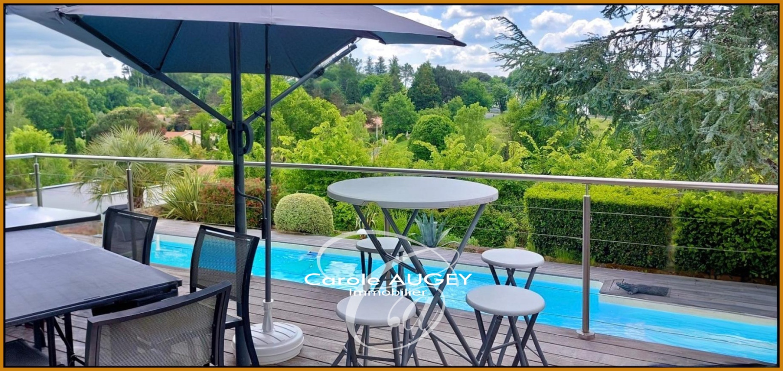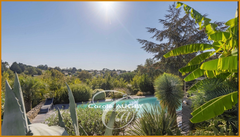 Ici en contrebas, la piscine au sel, chauffée, avec contrôle de PH automatique, disposant d'un volet électrique, il n'y a plus qu'à profiter longtemps des belles journées ensoleillées.