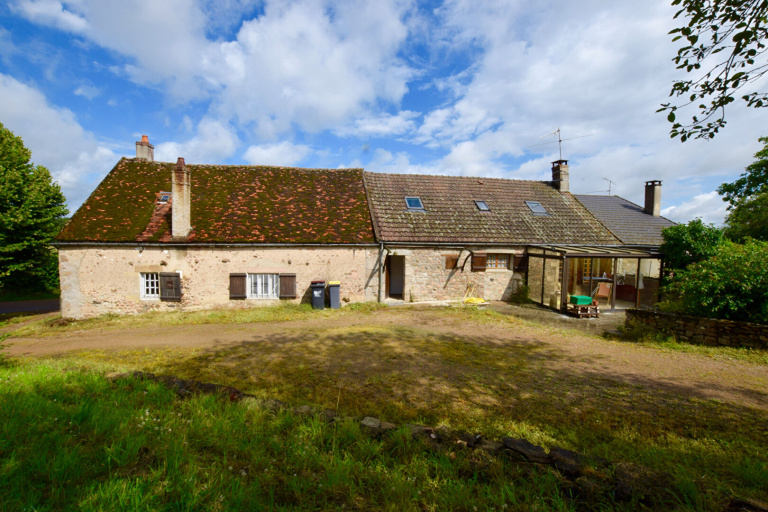 Parc Régional du Morvan, Nord Morvan, proche d'Avallon et Saulieu, Maison élevée en partie sur cave comprenant, une entrée par la véranda, un séjour équipé d'un poêle à bois, une cuisine ouverte, une chambre, une salle d'eau avec WC, un WC indépendant et un cellier. A l'étage un palier desservant une salle d'eau avec WC et deux chambres. Mitoyen à l'habitation principal, une maison à rénover comprenant trois pièces et une grange. Dépendances dans le terrain. Cour sur l'avant et terrain sur l'arrière.