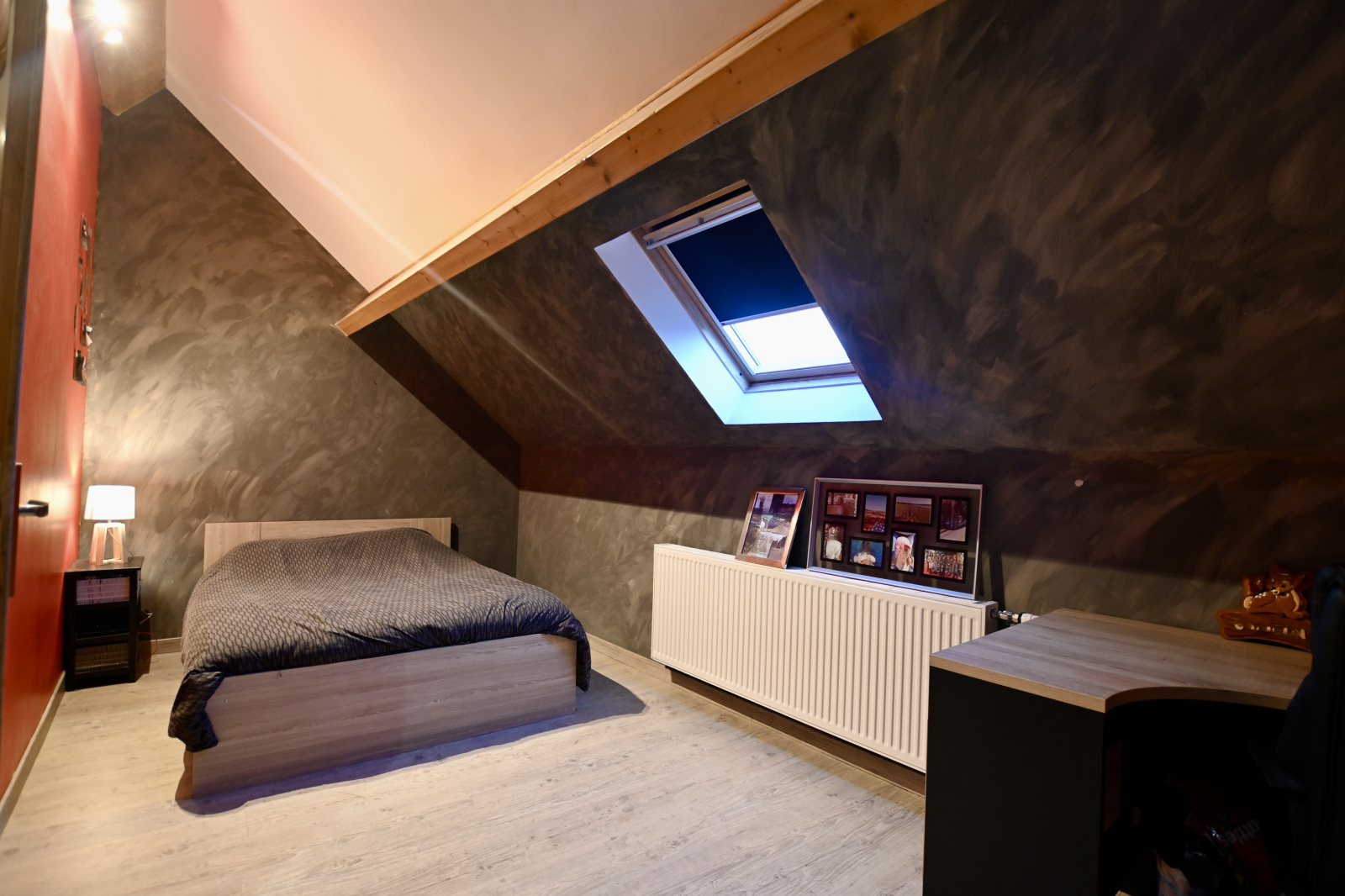 L'étage dessert quatre chambres mansardées accueillantes, une salle de douche à l'italienne et un WC indépendant, pensés pour le confort quotidien de toute la famille.