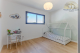 En revenant dans la pièce de vie, à gauche, nous découvrirons une superbe suite parentale, un véritable espace privé et intime. Elle se compose d’une chambre lumineuse, d’un dressing aménagé et d’une salle d’eau moderne. Les parents bénéficient ici d’une totale indépendance.