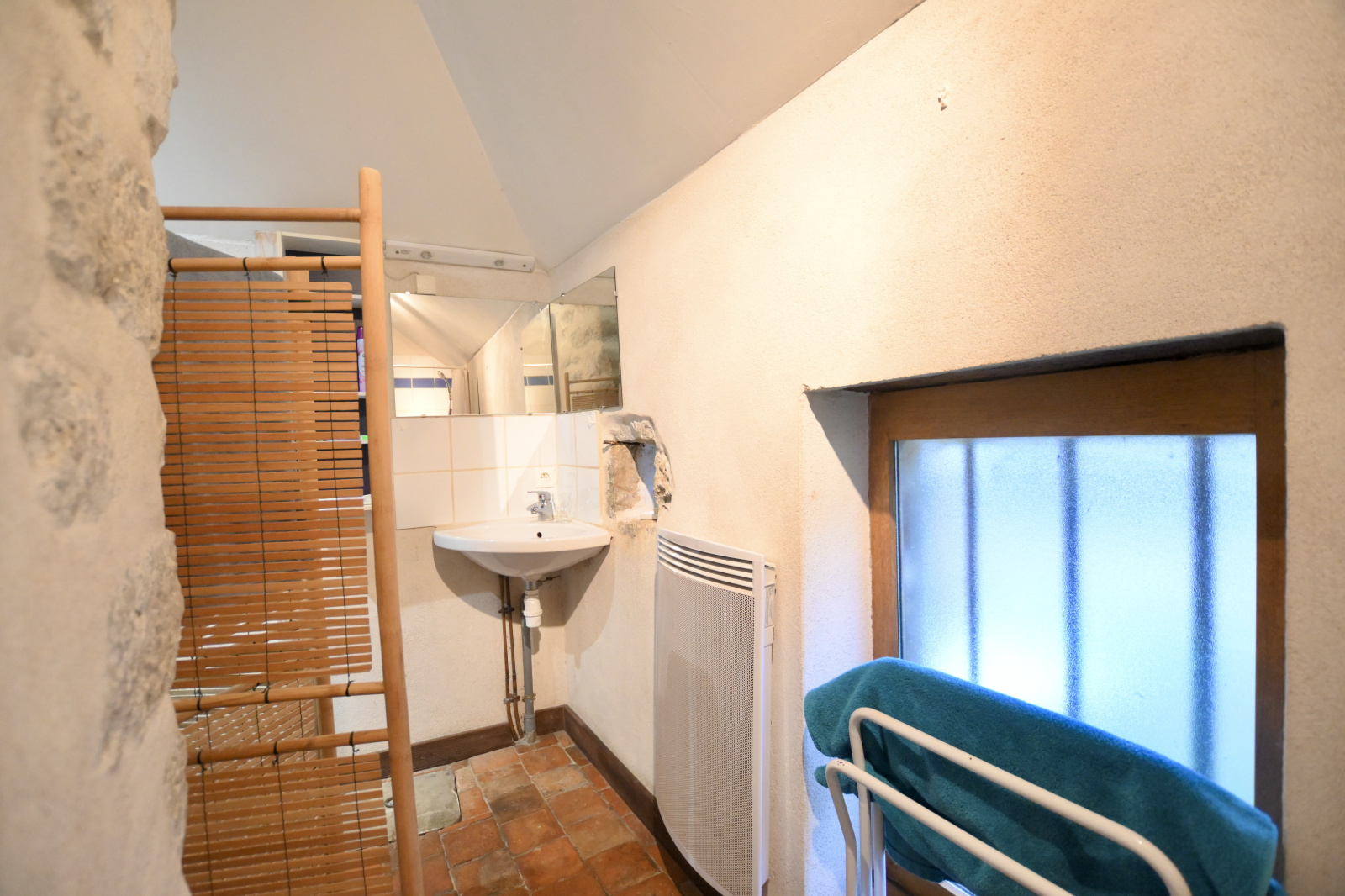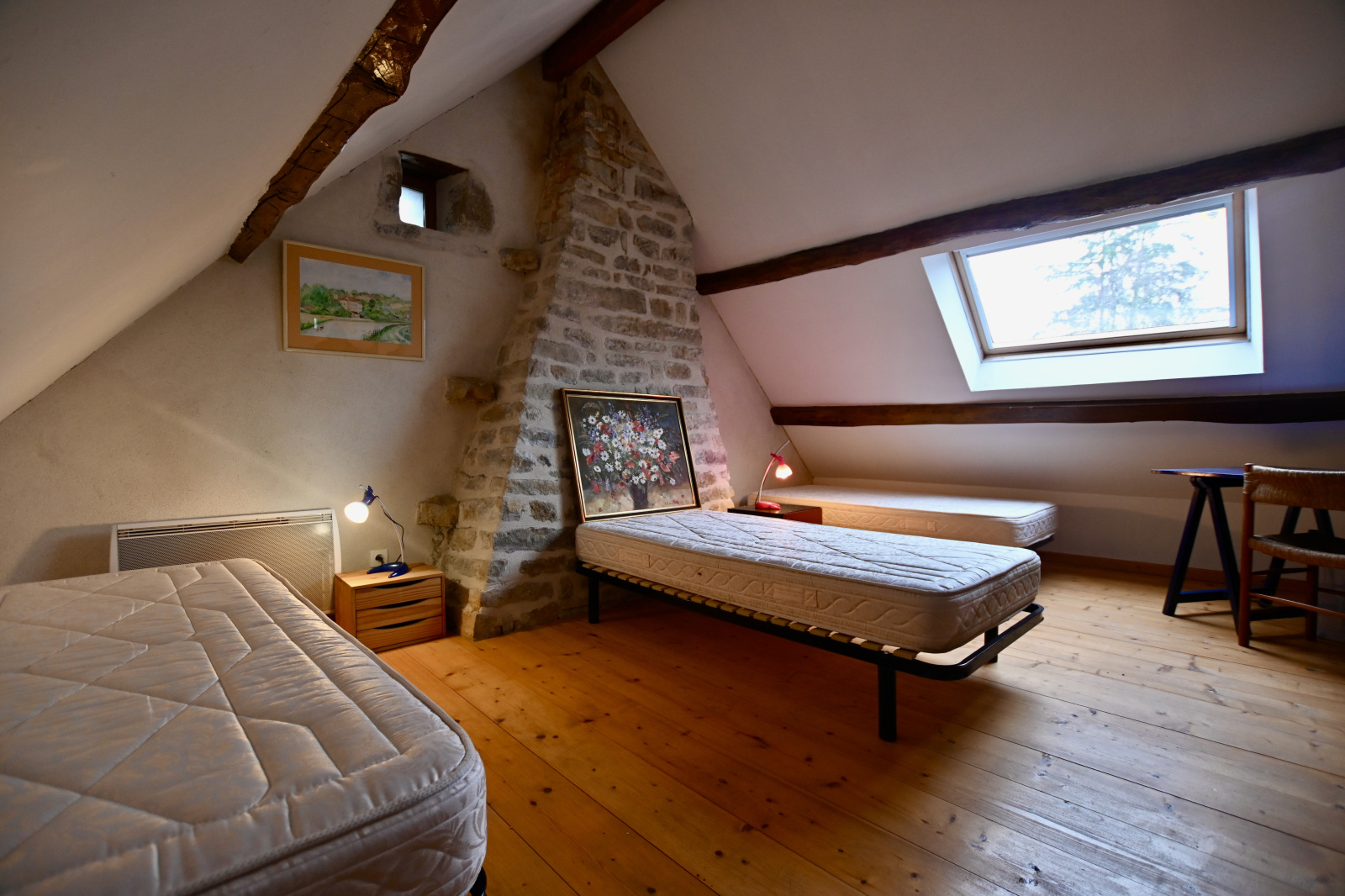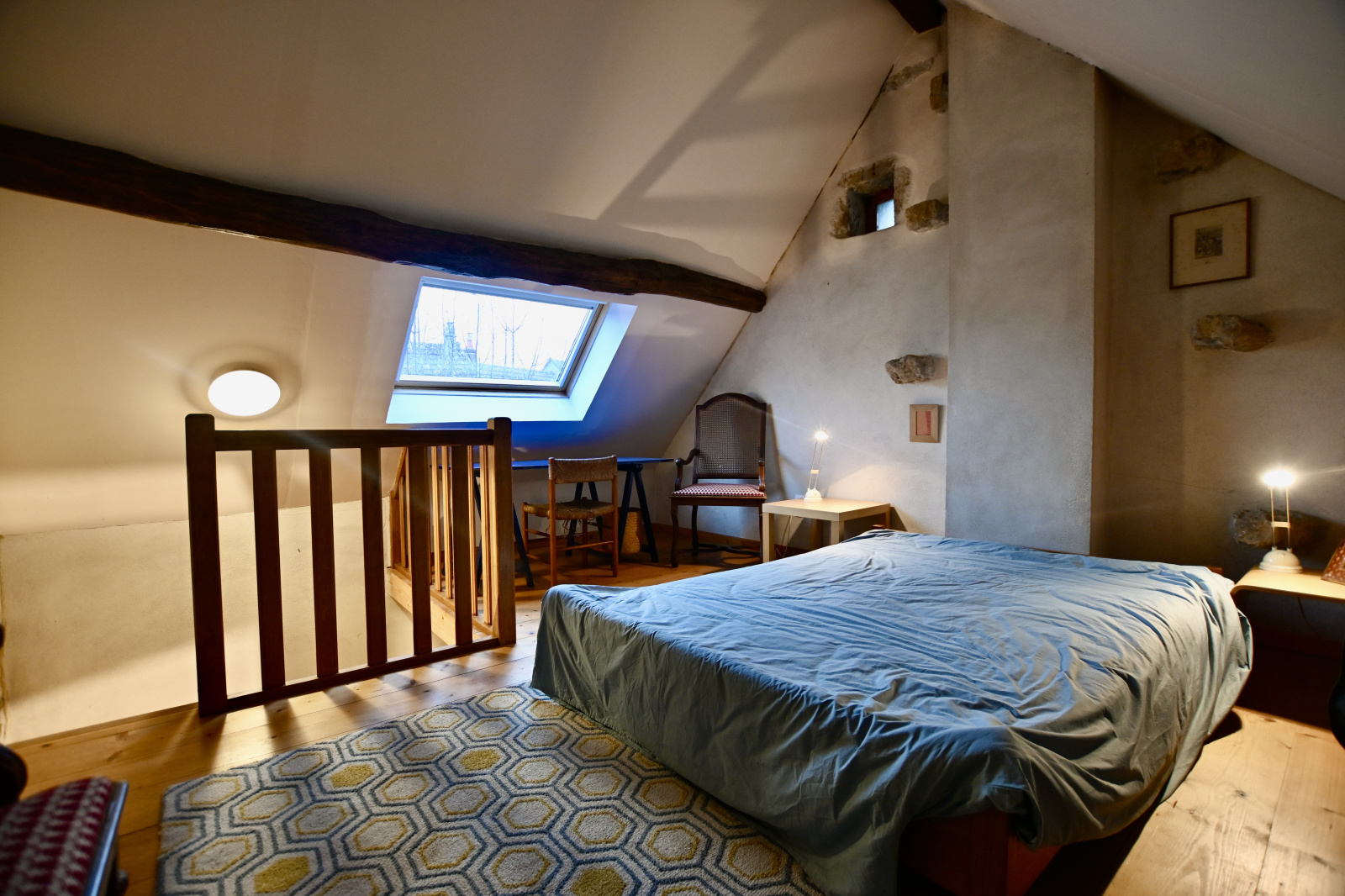 À l'étage une chambre en mezzanine et une seconde chambre.