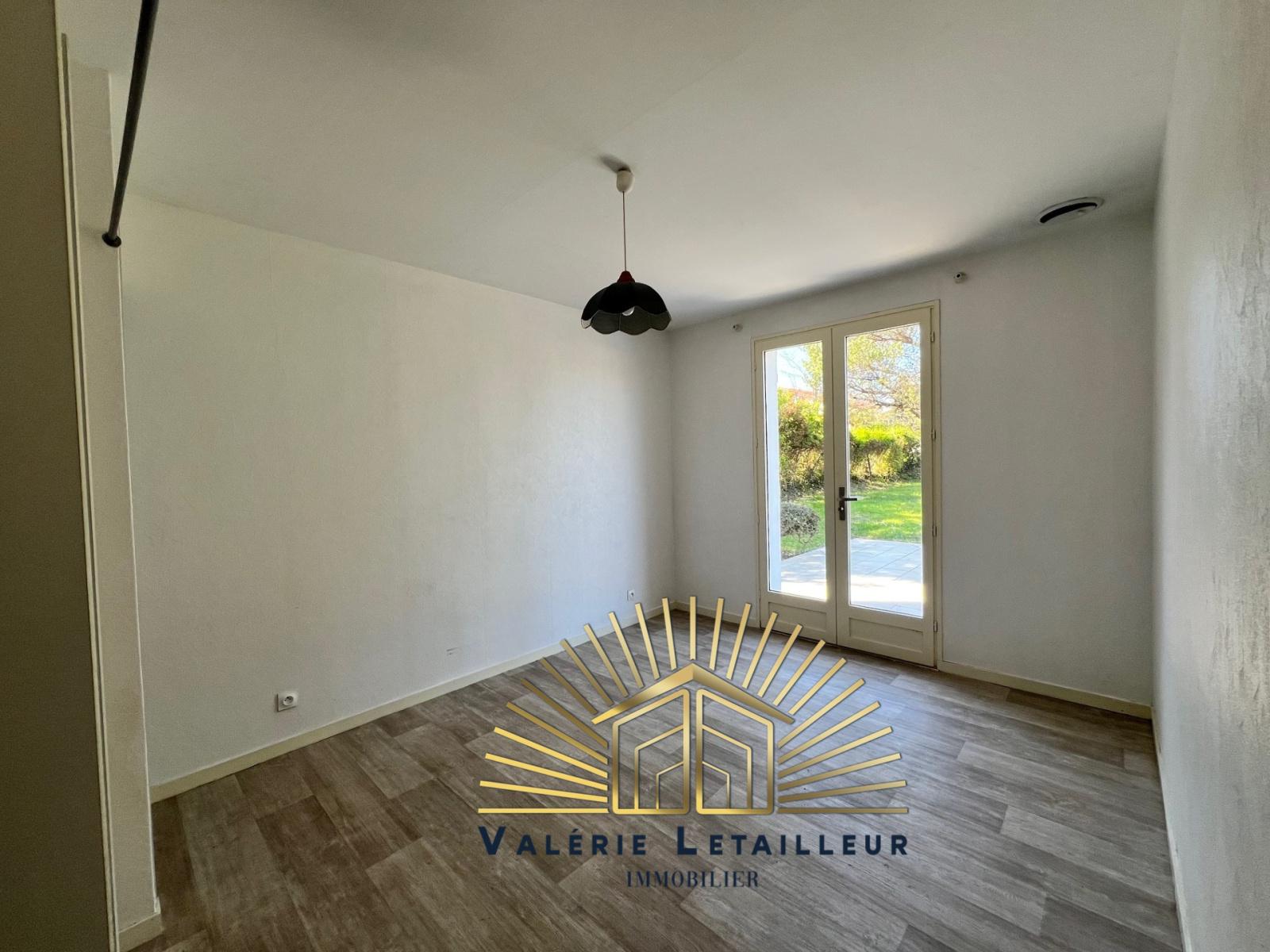 Passons maintenant à l’extérieur. À l’arrière de la maison, une grande terrasse permet de profiter du jardin, vaste, verdoyant, sans vis-à-vis, et piscinable. L’environnement calme et naturel ne pourra que séduire.