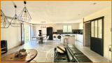 La pièce de vie d’environ 50 m² avec cuisine ouverte accompagne parfaitement le quotidien. Côté nuit, trois chambres dont une suite avec salle d’eau privative et accès direct au jardin. La climatisation réversible assure un bon confort toute l’année.