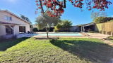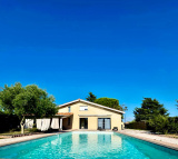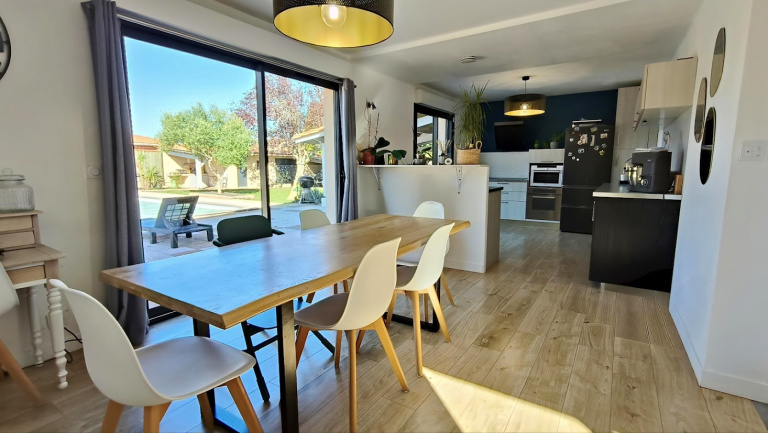 Salle à manger conviviale, ouverte sur la grande terrasse exposée sud face à la piscine