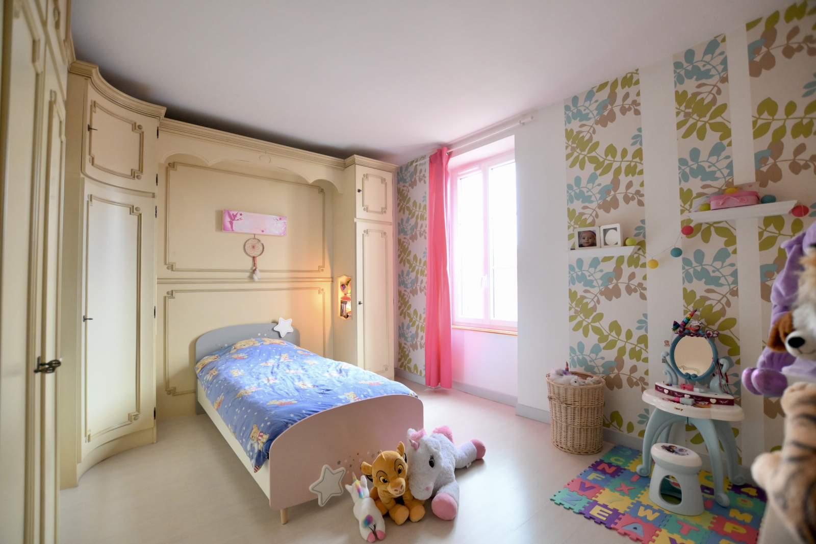 Au premier étage, le couloir dessert, trois chambres dont une avec son dressing et une salle de bains au dernier niveau le couloir distribue deux chambres une pièce de stockage et une salle d'eau avec WC.