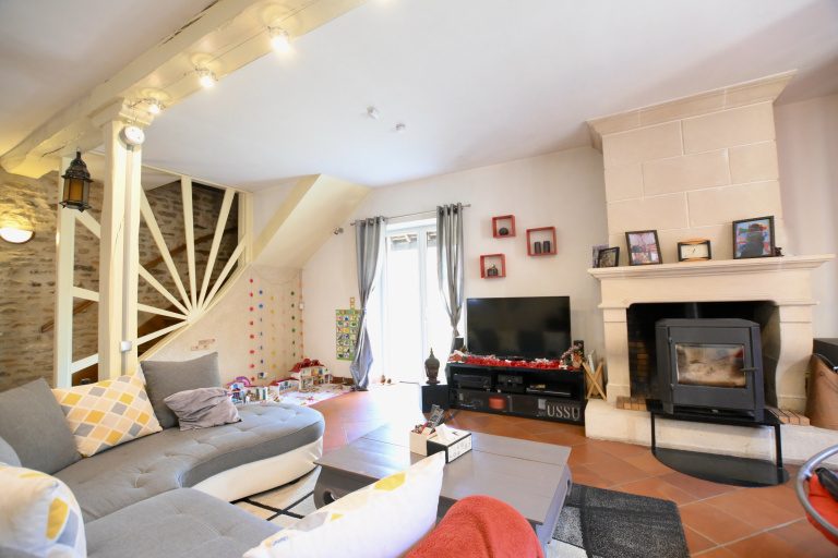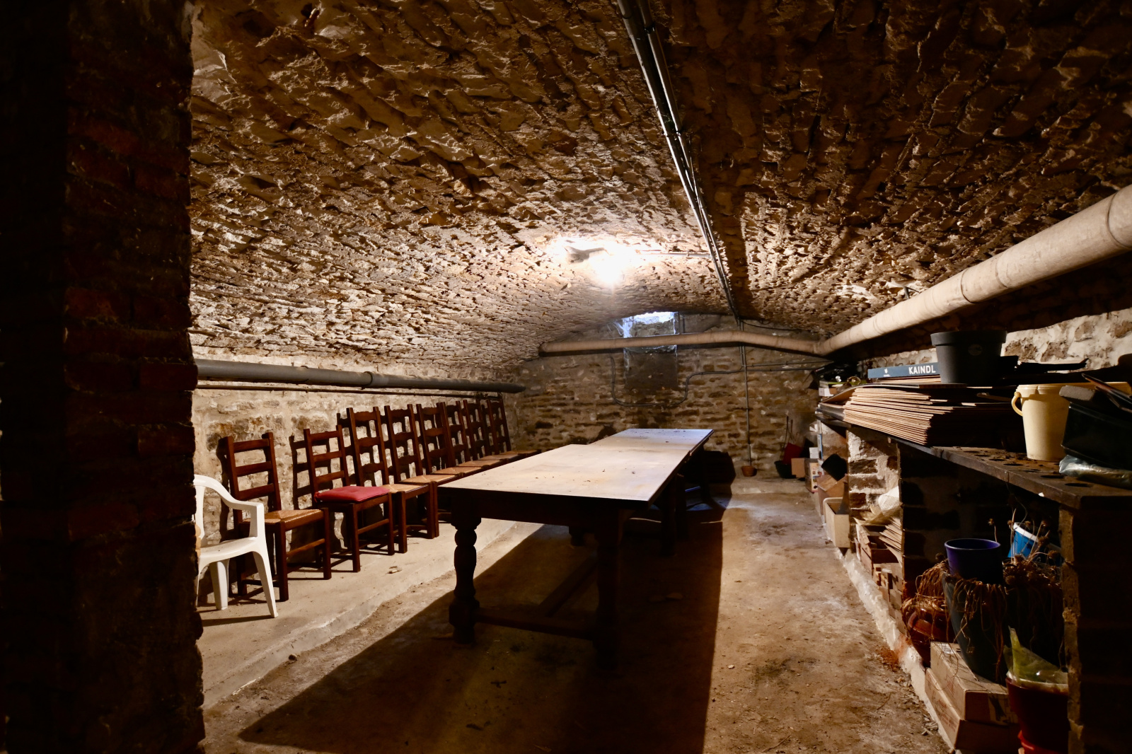 Maison élevée sur deux caves voûtées, espace de stockage et chaufferie (chauffage central par chaudière à granulés avec son silo).