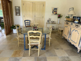 Grand salon lumineux d'environ 35m2 avec cheminée ouvrant sur une salle à manger de 20m2. Cuisine conviviale de 20m2 équipée et aménagée ouverte sur la terrasse, une lingerie, une arriére cuisine, un autre bureau, Une suite parentale avec dressing, salle de bains, douche et wc ainsi qu'une autre chambre avec salle d'eau et wc compléte le rez de chaussée coté piscine.