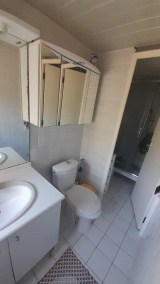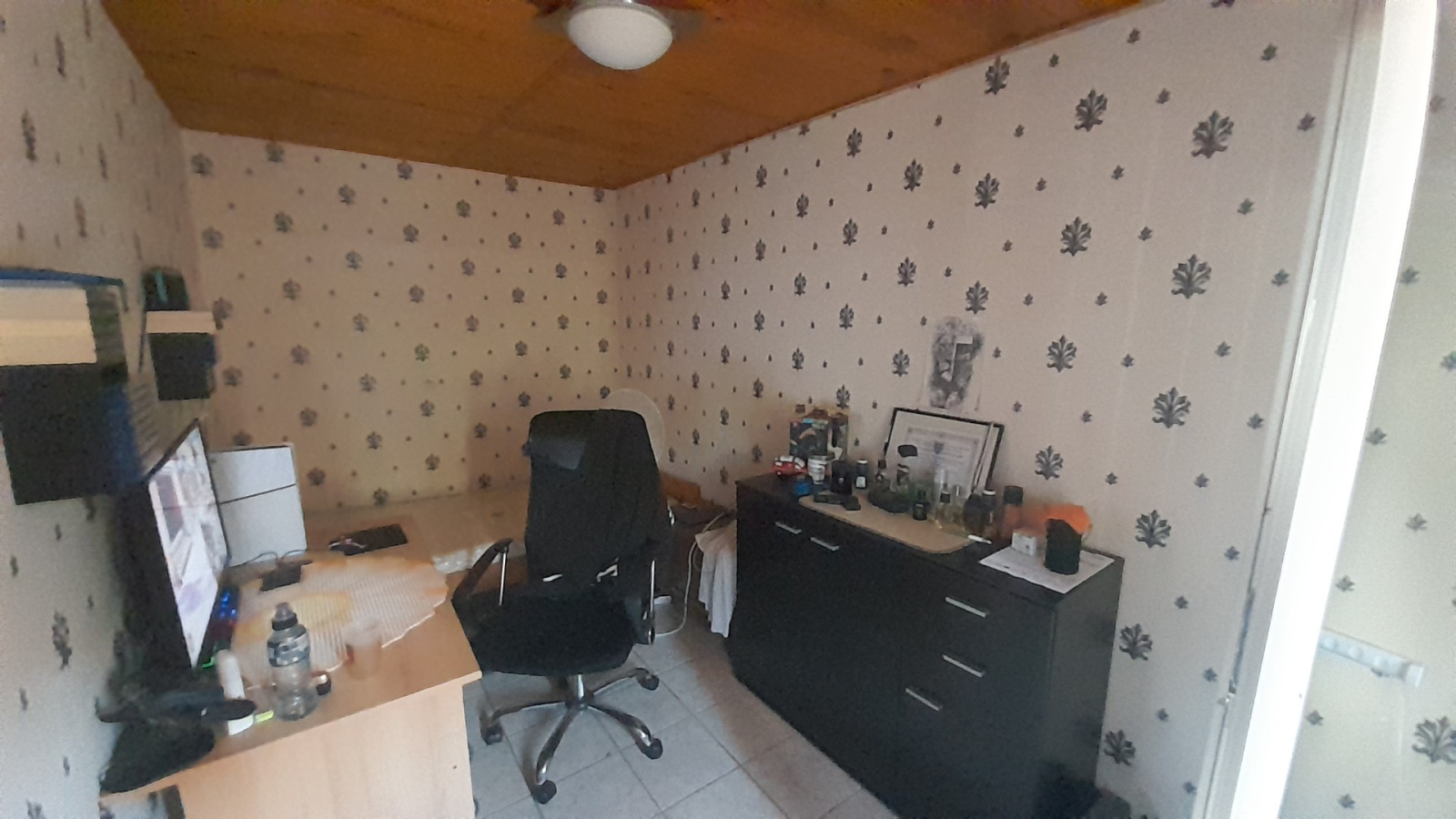 Chaudière au bois. Double vitrage avec volets bois et volets roulants manuels.