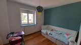 Maison attenante (122 m² – actuellement louée 890 €/mois). Composée d’une entrée, cuisine équipée, séjour-salon, 1 chambre, salle d’eau et WC.À l’étage : dégagement, 2 chambres, bureau, WC.Extérieurs avec terrasse et jardin de 260 m².