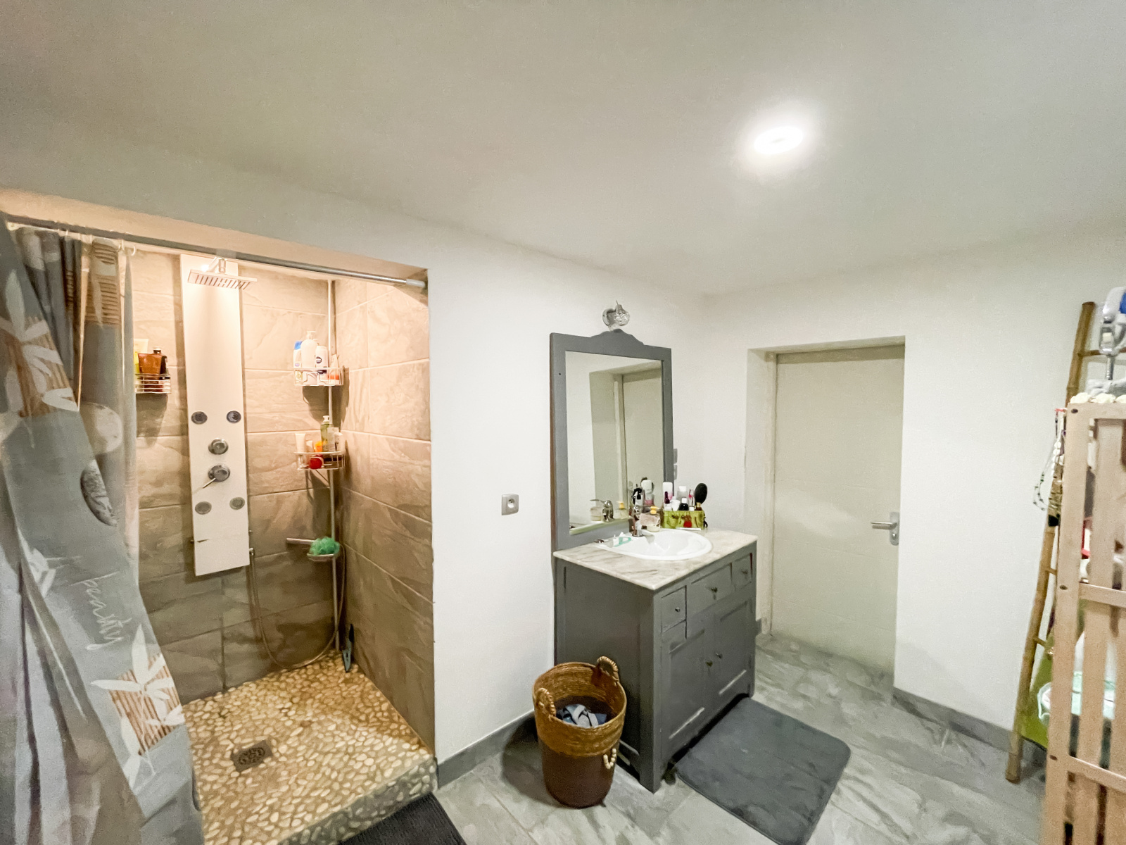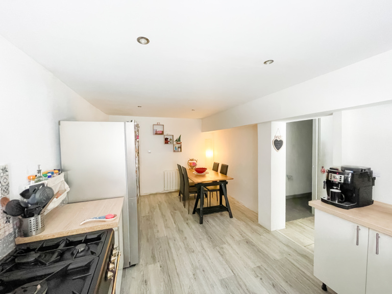 Vous trouverez au RDC une entrée séparée desservant un espace à vivre de 36.5m² composé d'une grande cuisine dînatoire et d'un séjour. Un WC séparé et une buanderie complètent cet espace.
