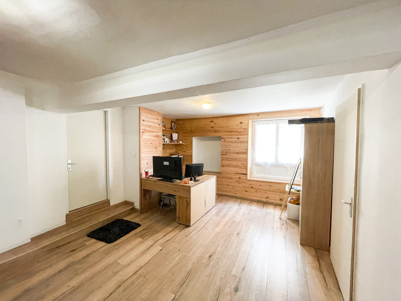 A l'étage, un grand dégagement faisant office de bureau permet d'accéder à une première chambre de 10m² avec placard, et une seconde chambre parentale de 20m² avec son espace dressing. Une salle d'eau avec WC complète ce niveau.