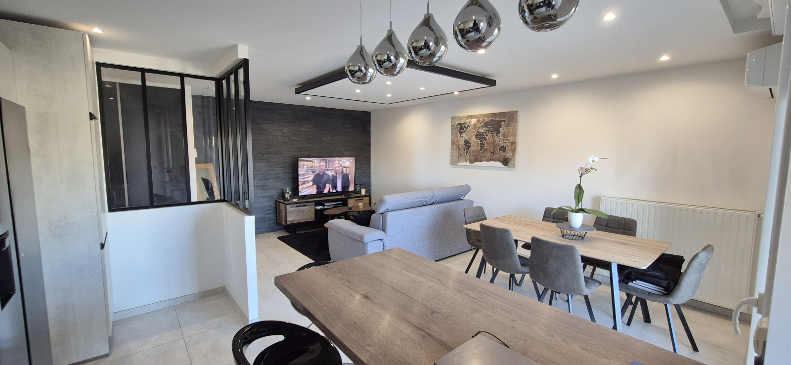 Ce bien se compose d’un hall d’entrée de 3,80 m², d’un dégagement avec placard de 4,60 m², et s’ouvre sur une agréable pièce de vie lumineuse de plus de 30 m² intégrant un séjour confortable et une cuisine ouverte à l’américaine, moderne et entièrement équipée, offrant un espace convivial et fonctionnel.
