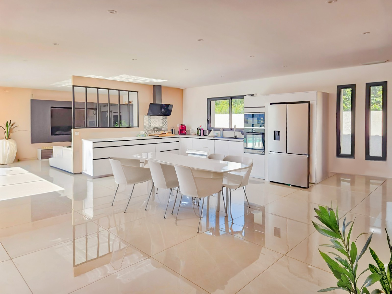 EN EXCLUSIVITE - Maison récente plain pied avec un beau volume de 147m2 sur un joli terrain paysagé de 580m2 et agrémenté d'une piscine 8X4m et d'une grande terrasse avec une vue panoramique, aucun vis à vis.