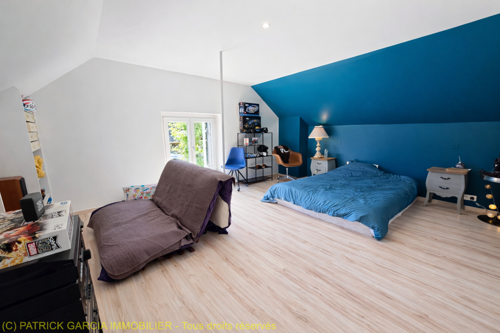 Le rez-de-chaussée accueille également une suite parentale confortable avec dressing et une belle salle d’eau aux prestations soignées, un bureau idéal pour le télétravail ainsi que des WC indépendants.